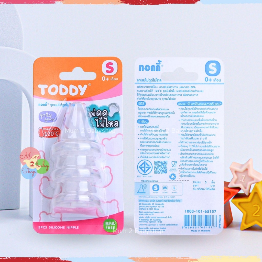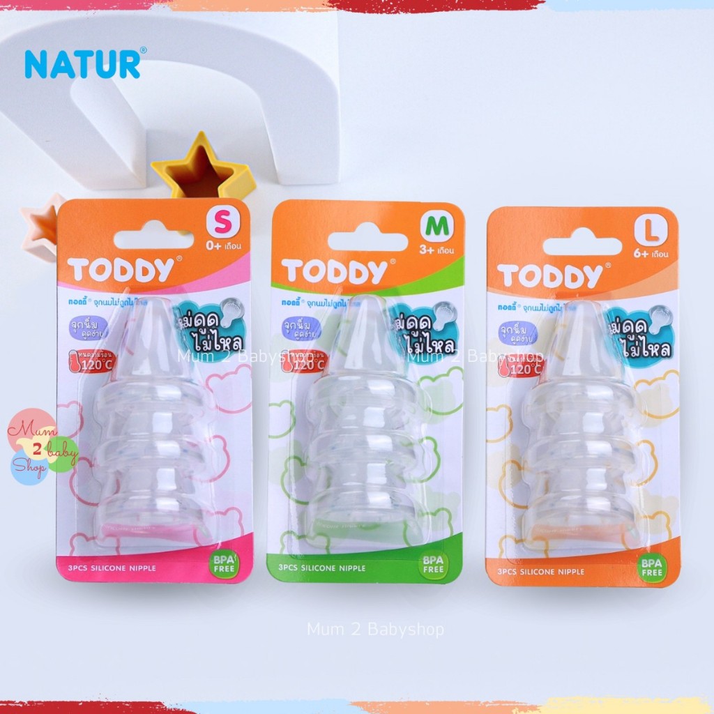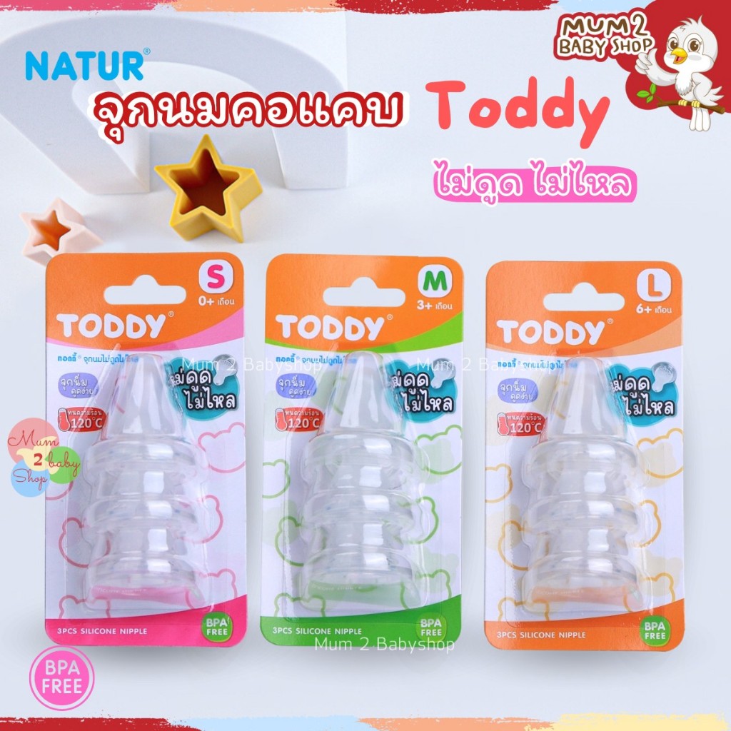 รุ่นใหม่ Natur เนเจอร์ จุกนมคอแคบ ไม่ดูดไม่ไหล แพค 3จุก จุกนมเด็ก รุ่นToddy