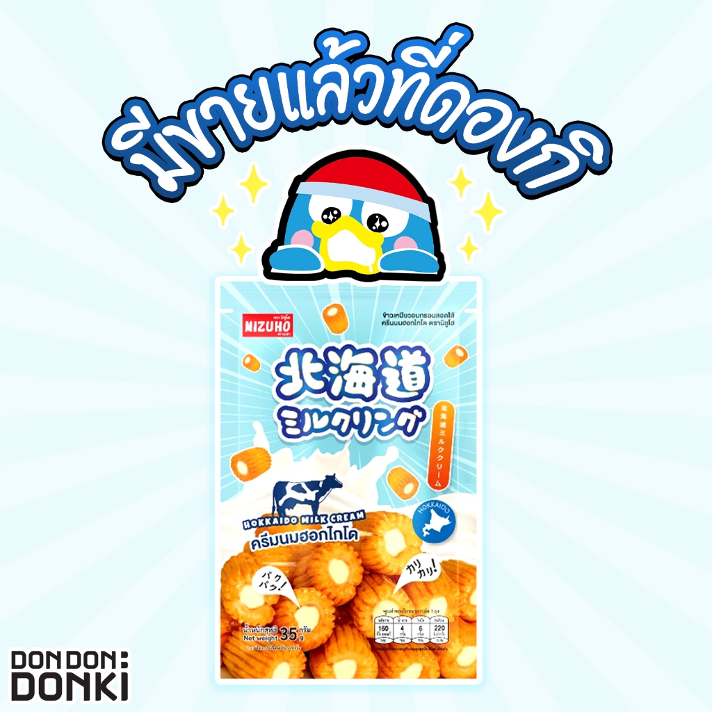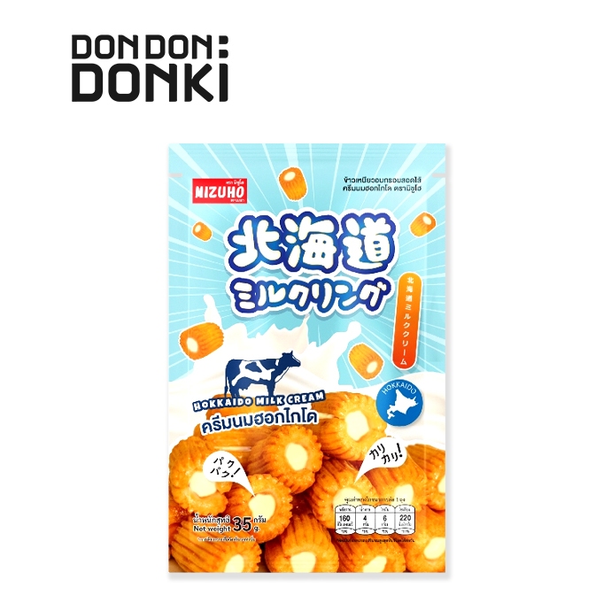 Mizuho Hokkaido Milk Cream ข้าวเหนียวอบกรอบสอดไส้ครีมนมฮอกไกโด (ซองสีฟ้า) น้ำหนักสุทธิ 35กรัม