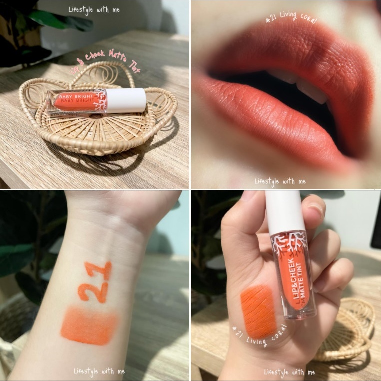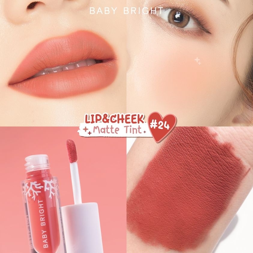 【สีใหม่ 21-30】ลิปแมทท์ กันน้ำ ติดทน【ปาก+ตา+แก้ม】Baby Bright Lip & Cheek Matte Tint 2.4g #BLIP01