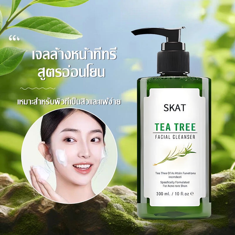 เจลล้างหน้าทีทรี สูตรอ่อนโยน 300ml ผลิตภัณฑ์ทำความสะอาดผิวหน้า Tea Tree Facial Cleanser(1471)