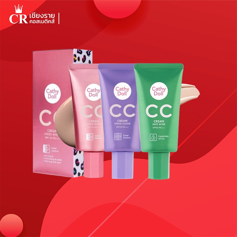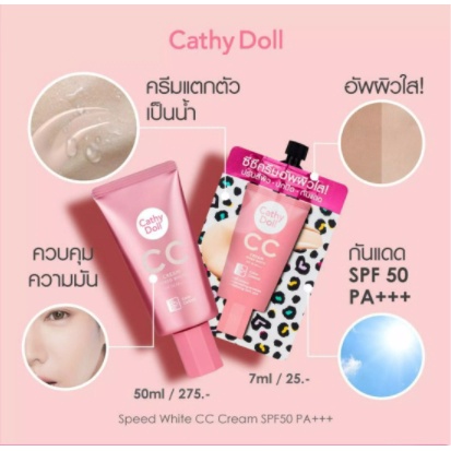 Cathy Doll CC Cream ซีซีสปีดไวท์ เนื้อครีมแตกตัวเป็นน้ำแร่ (แบบหลอด) ปริมาณ 50 มล.