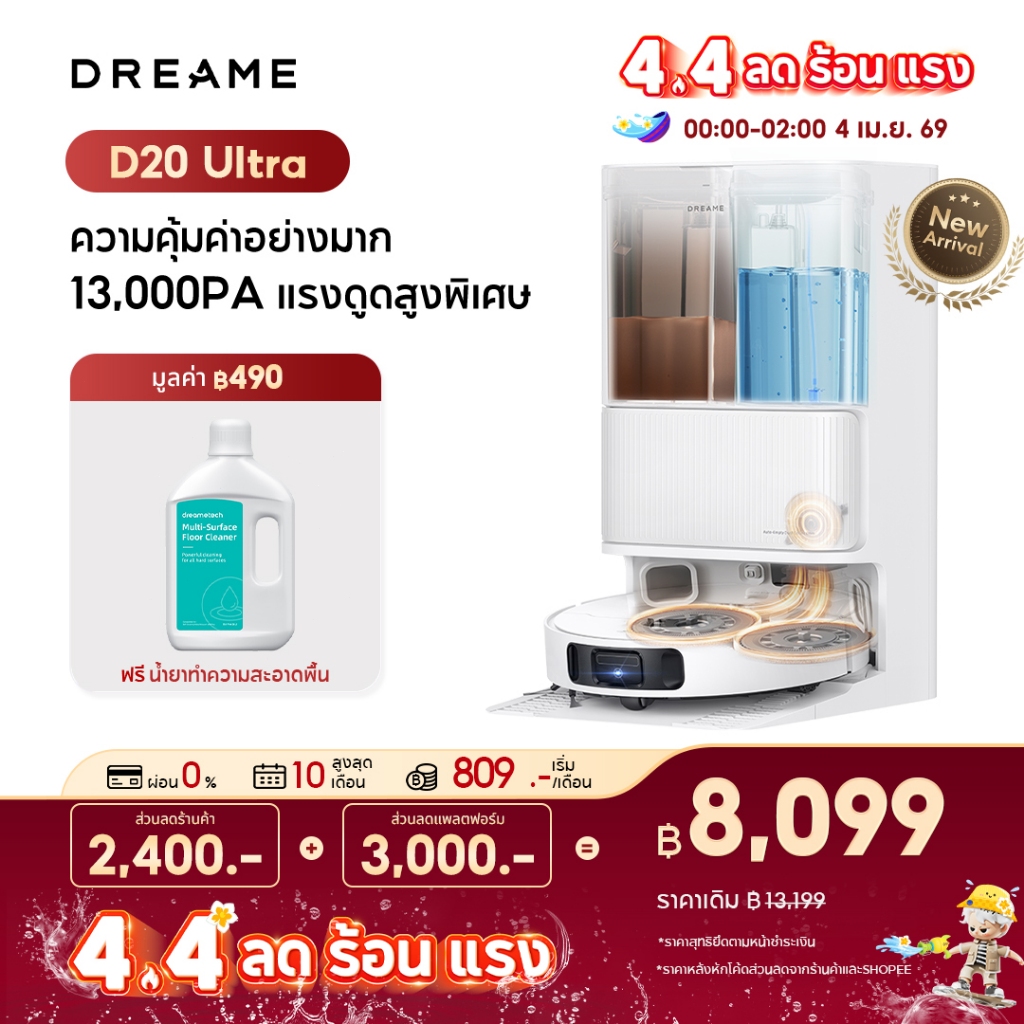 【HOT】Dreame Bot D20 Ultra Robot Vacuum Cleaner 13,000Pa หุ่นยนต์ดูดฝุ่น ถูพื้น ซัก-อบแห้ง เติม-ระบายน้ำอั