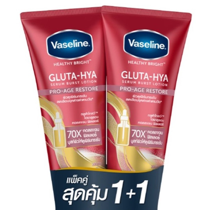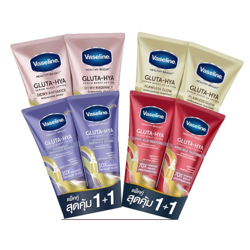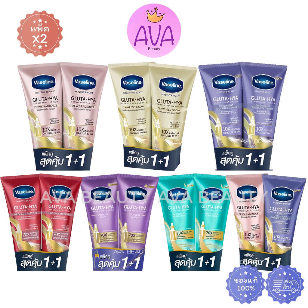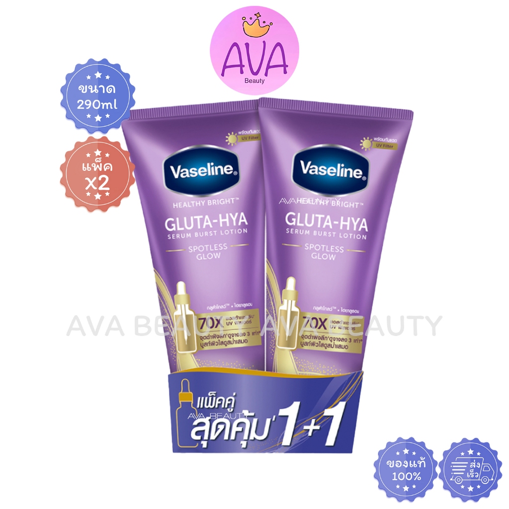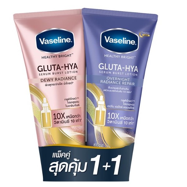 (290ml,300ml/แพคคู่) VASELINE Healthy Bright Gluta-Hya วาสลีน เฮลธี้ ไบรท์ กลูต้า ไฮยา เซรั่ม โลชั่น