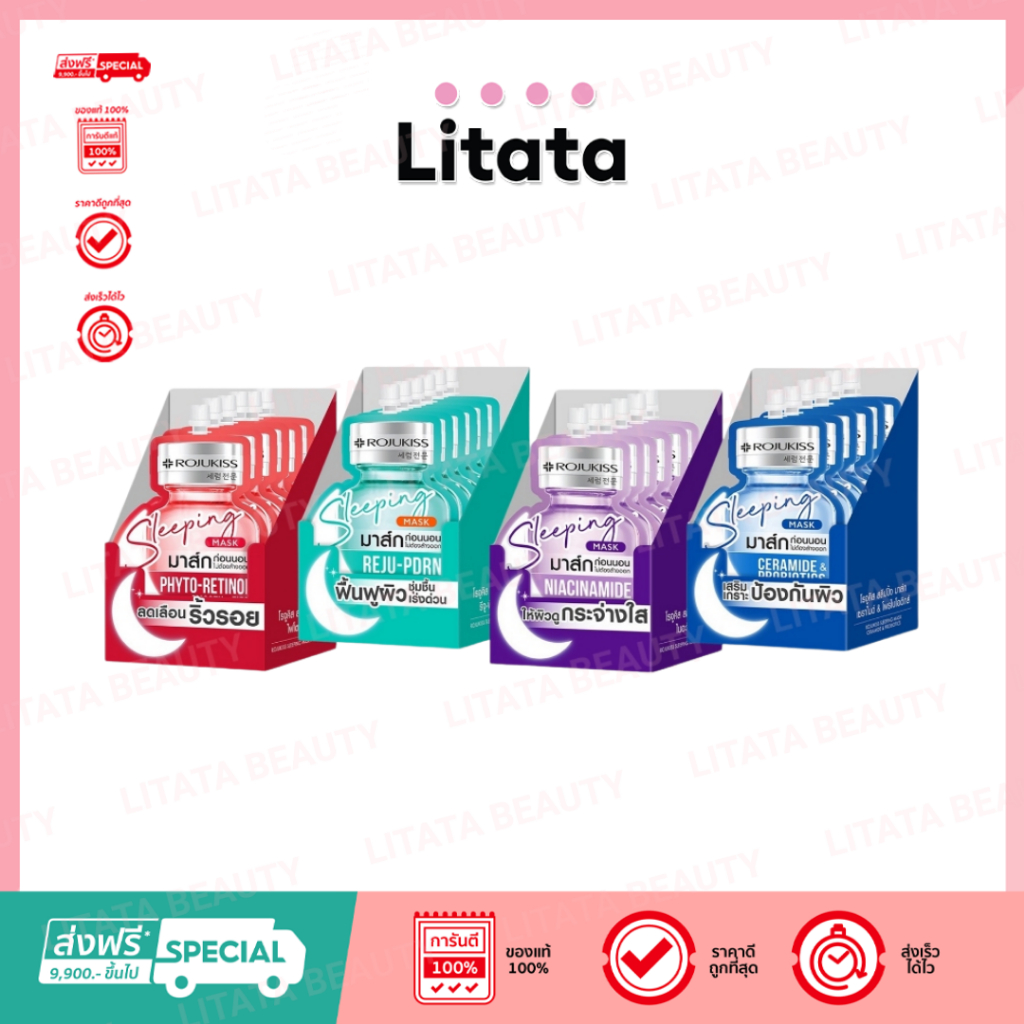 กล่องx6 ROJUKISS SLEEPING MASK โรจูคิส สลิปปิ้งมาส์ก เซรั่มมาส์กเนื้อเจลเข้มข้น 20มล.