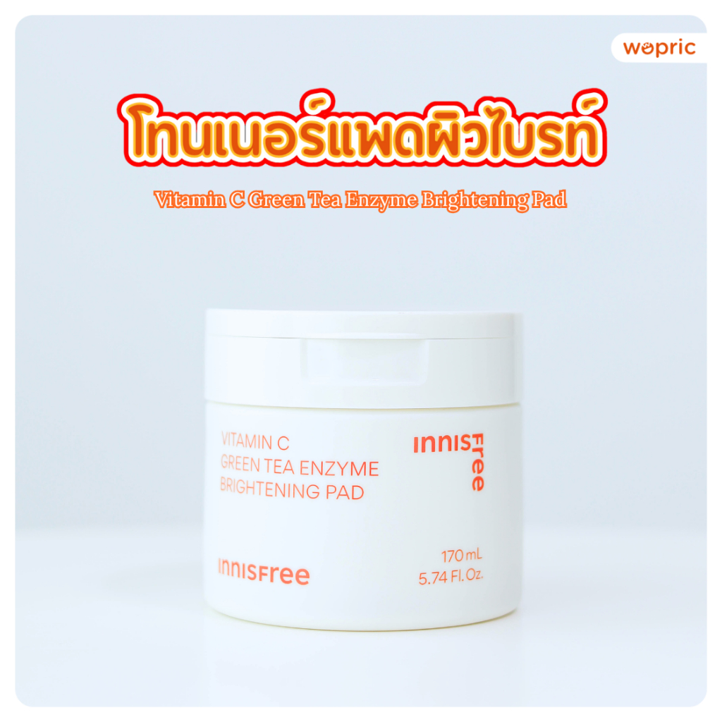แท้💯พร้อมส่ง Innisfree Vitamin C Green Tea Enzyme Brightening Pad 170mL (60Pads) แผ่นโทนเนอร์วิตมินซี ปรับผิวกระจ่างใส