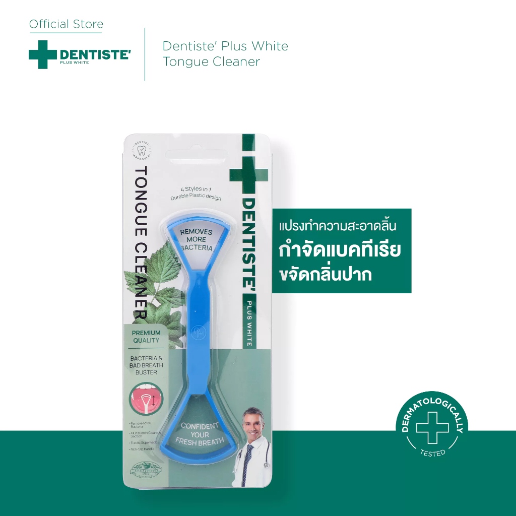 Dentiste' Plus White Tongue Cleaner แปรงทำความสะอาดลิ้น กำจัดแบคทีเรีย ลดกลิ่นปาก ใช้ได้ 2 ด้าน เดนทิสเต้