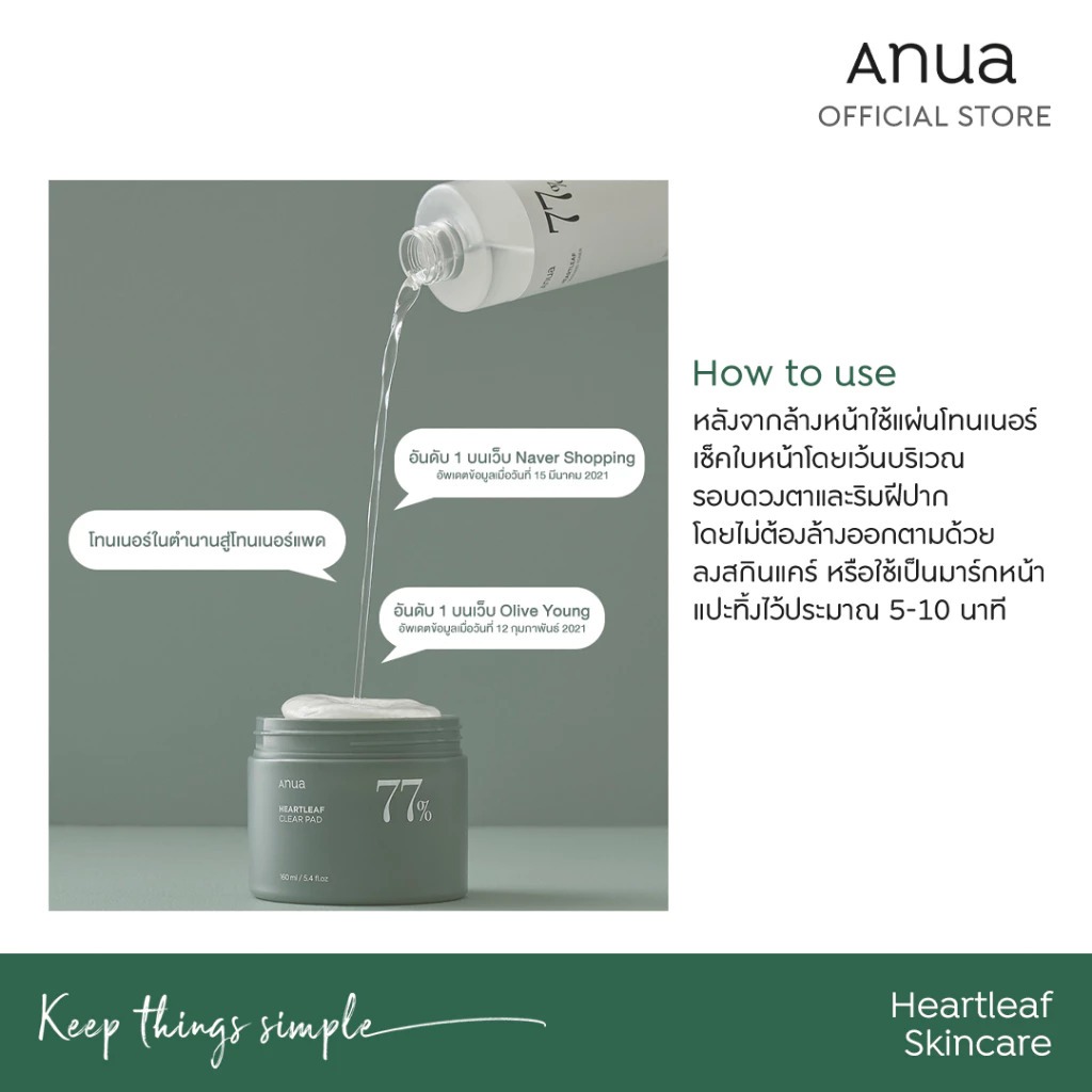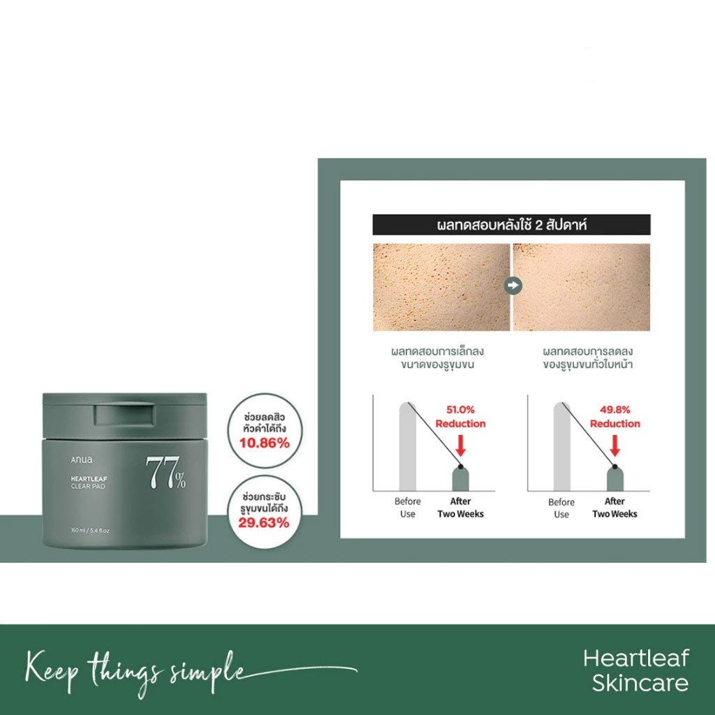 ANUA : HEARTLEAF 77 CLEAR PAD 160ml เคลียร์แพดอานัว ผลัดเซลล์ผิว ลดสิวอุดตัน