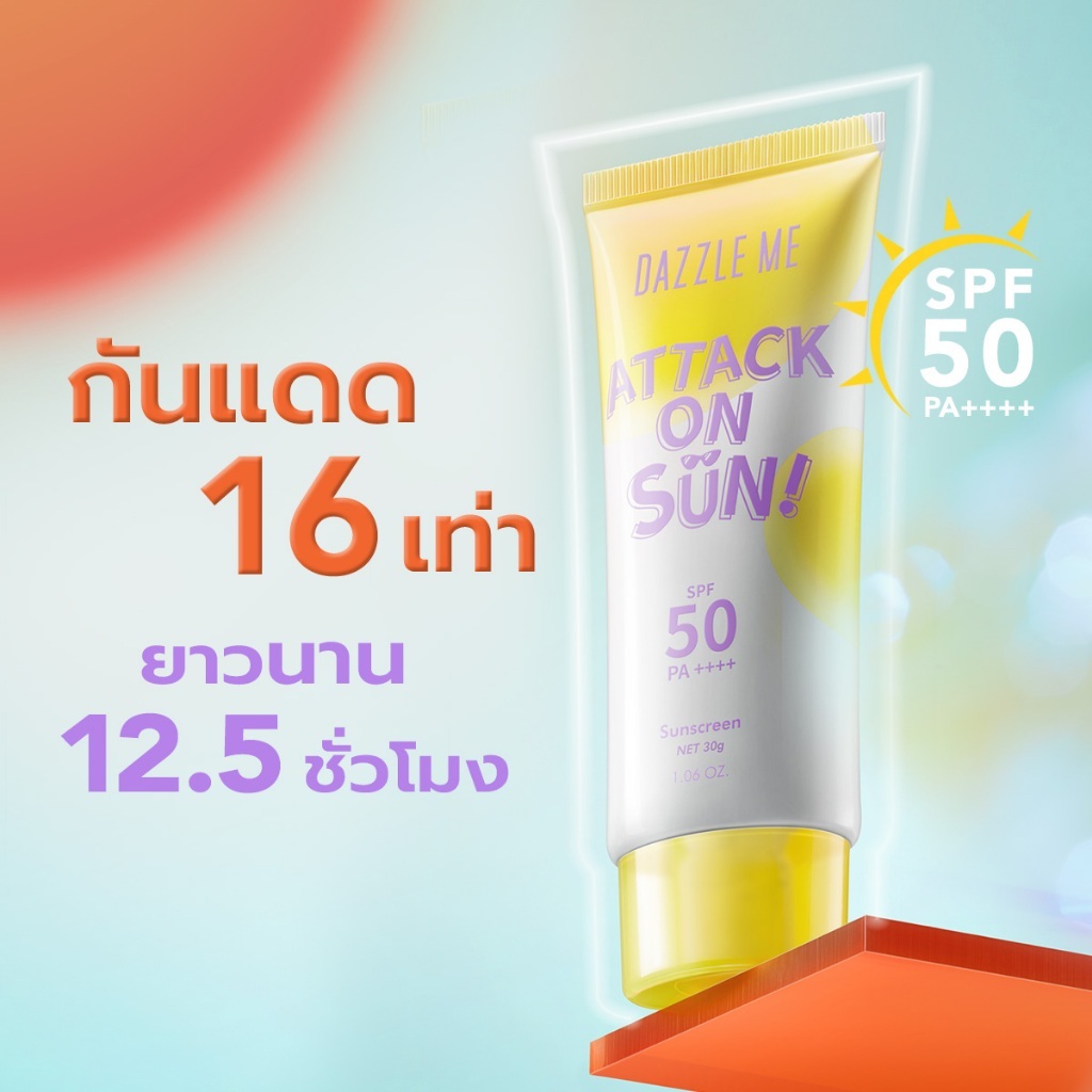 DAZZLE ME แอทแทค ออน ซัน! แดซเซิล มี ซันสกรีน เอสพีเอฟ Attack on Sun! Sunscreen SPF 50 PA ++++ 30g