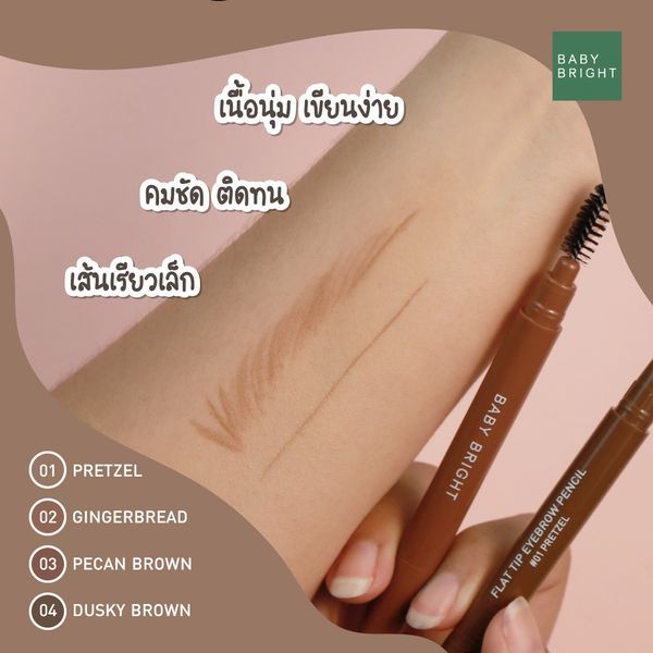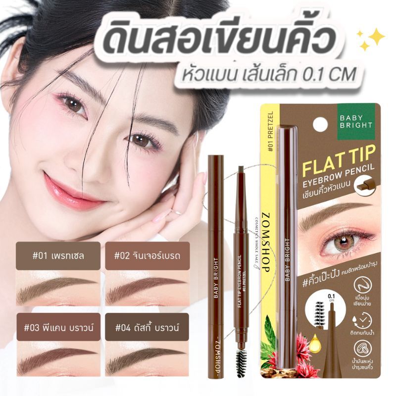 Baby Bright ดินสอเขียนคิ้ว【แฟลตทิป】กันน้ำ เส้นเรียวเล็ก Flat Tip Eyebrow Pencil 0.16g