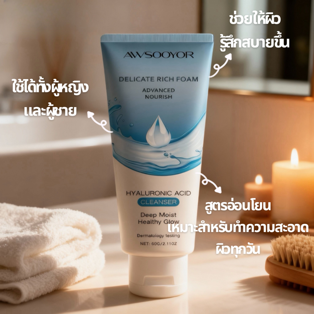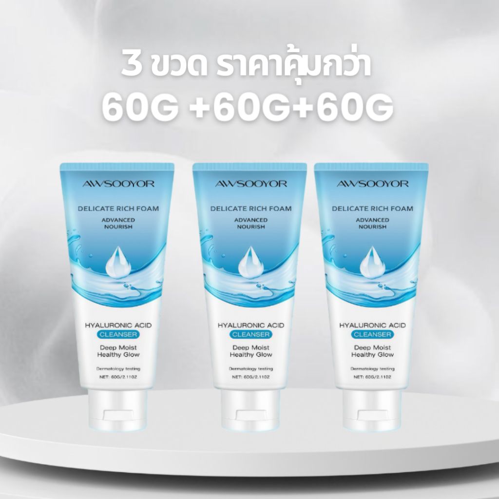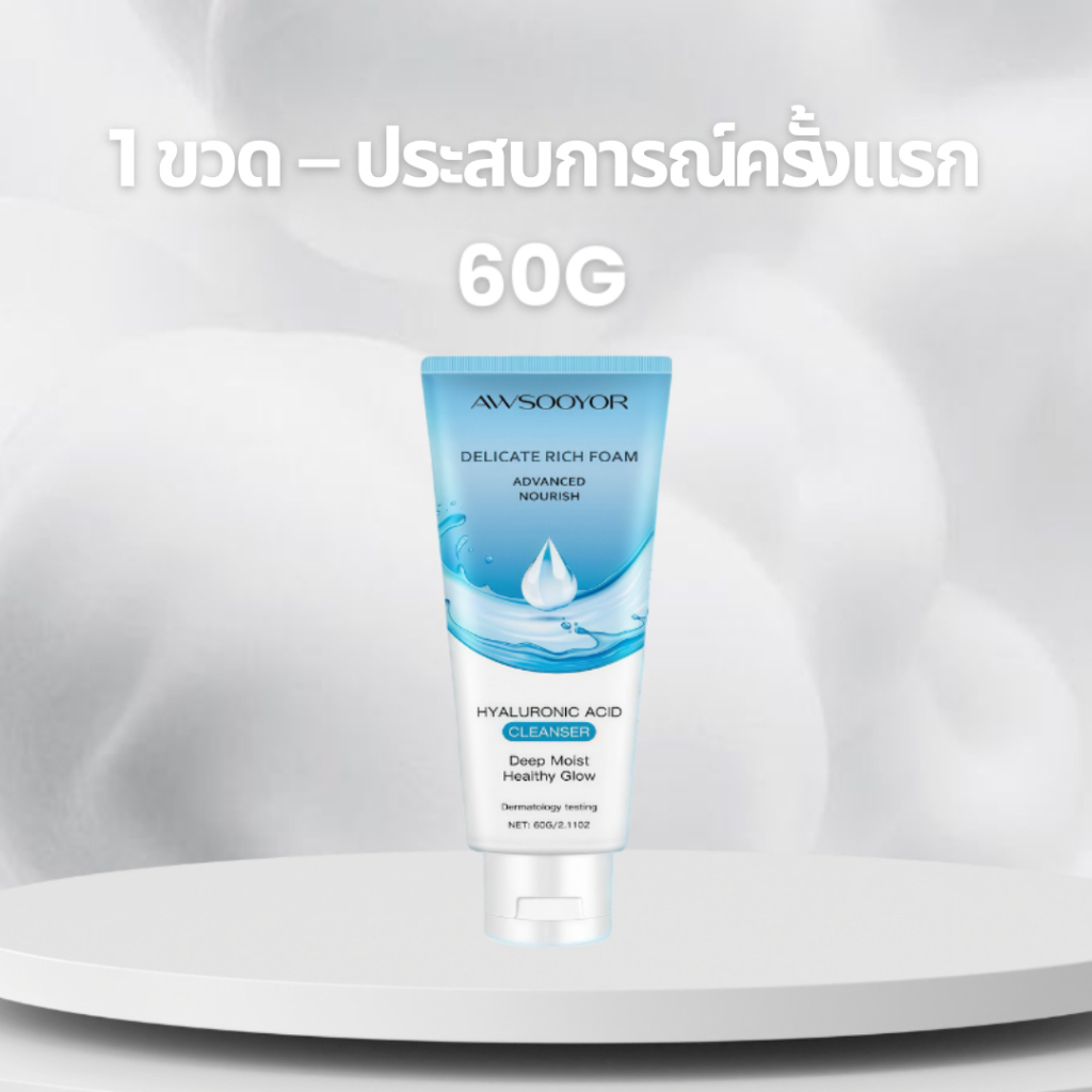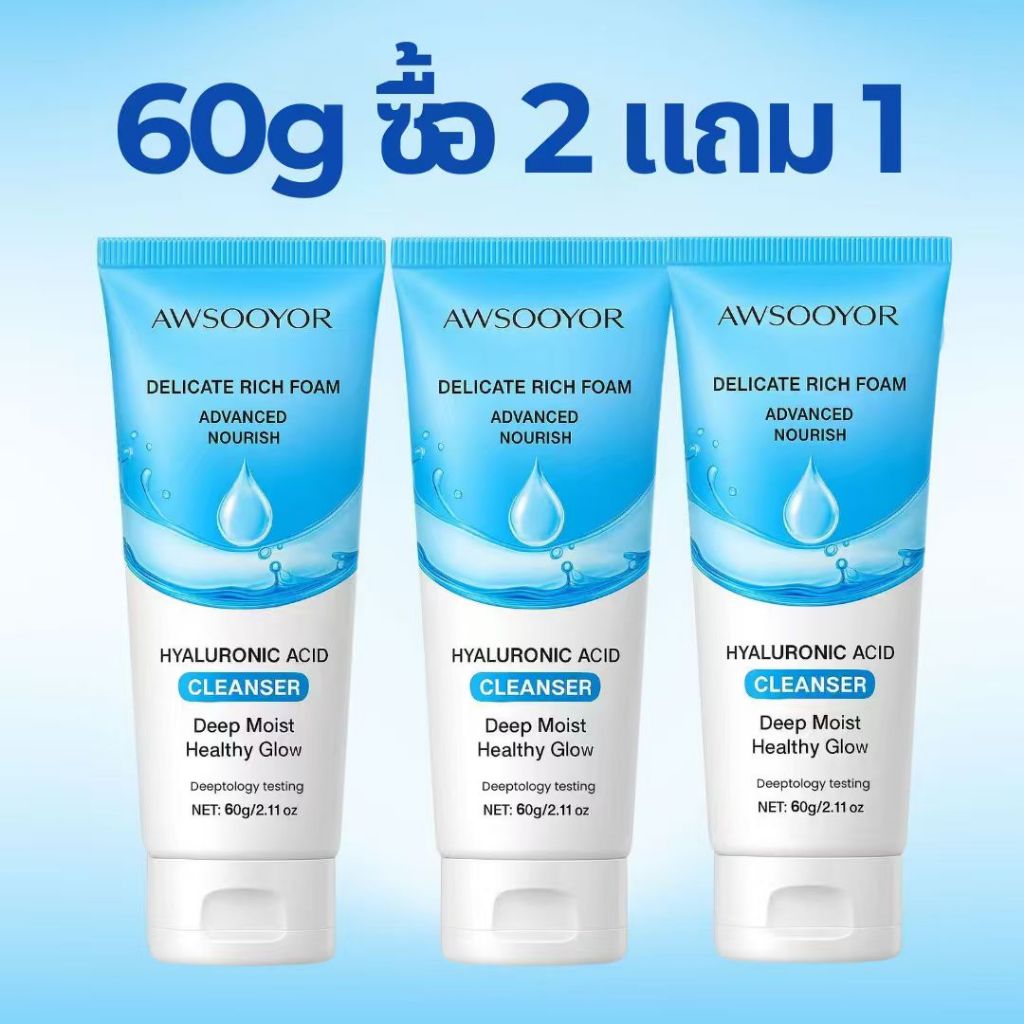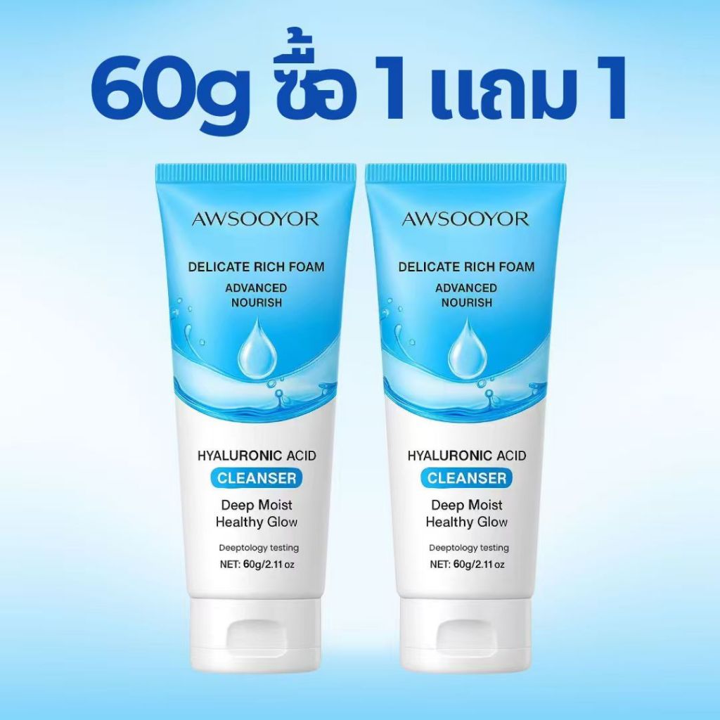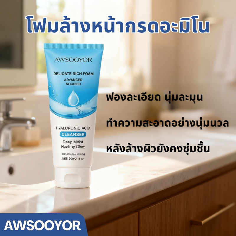 AWSOOYOR โฟมล้างหน้ากรดอะมิโน 60g ทำความสะอาดอย่างอ่อนโยน ฟองโฟมนุ่ม เกลี่ยง่ายบนผิวหน้า เหมาะกับหลายสภาพผิว