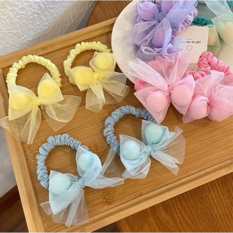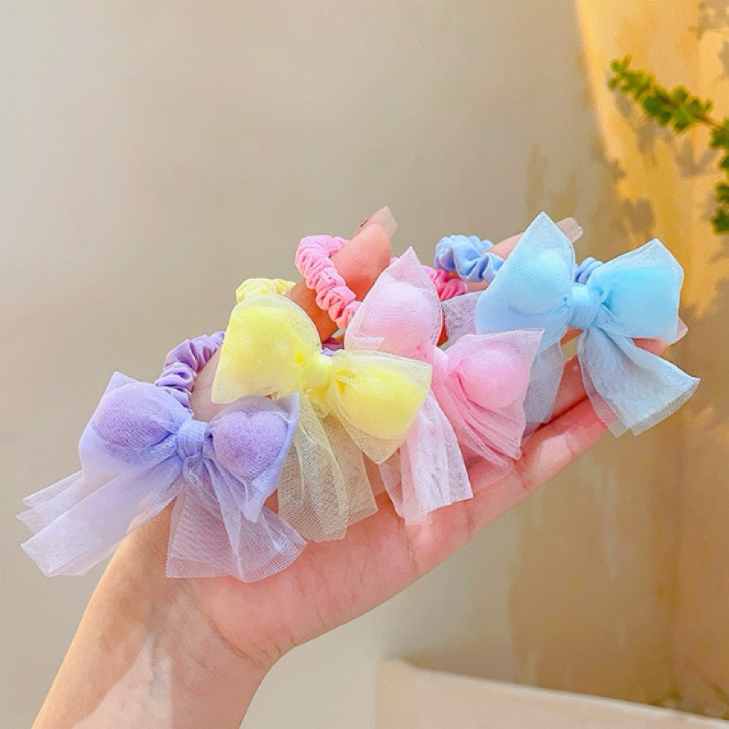 พร้อมส่ง ยางรัดผมหางม้า แบบยืดหยุ่น ประดับโบว์ สีแคนดี้ สําหรับเด็กผู้หญิง