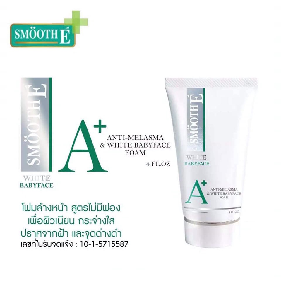 [แพ็ค 2] Smooth E Anti Melasma & White Baby Face Foam 4 Oz. ฝ้าจางลงใน 4 สัปดาห์ โฟมล้างหน้าไม่มีฟอง สมูทอี ผิวไม่มัน
