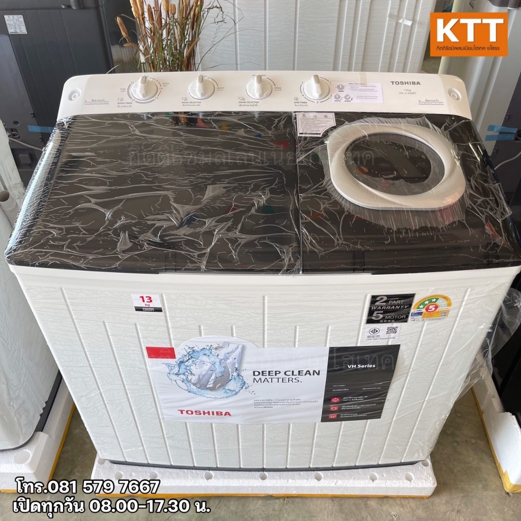 TOSHIBA เครื่องซักผ้า 2 ถัง ขนาด 13 Kg สีขาว รุ่น VH-J140MT พร้อมส่ง