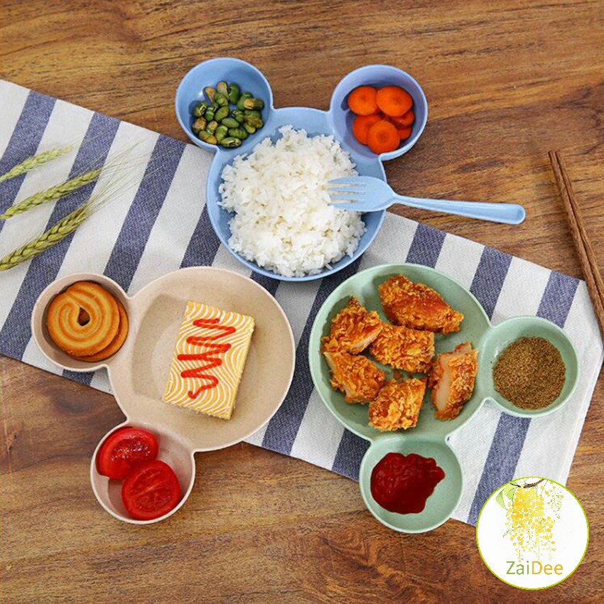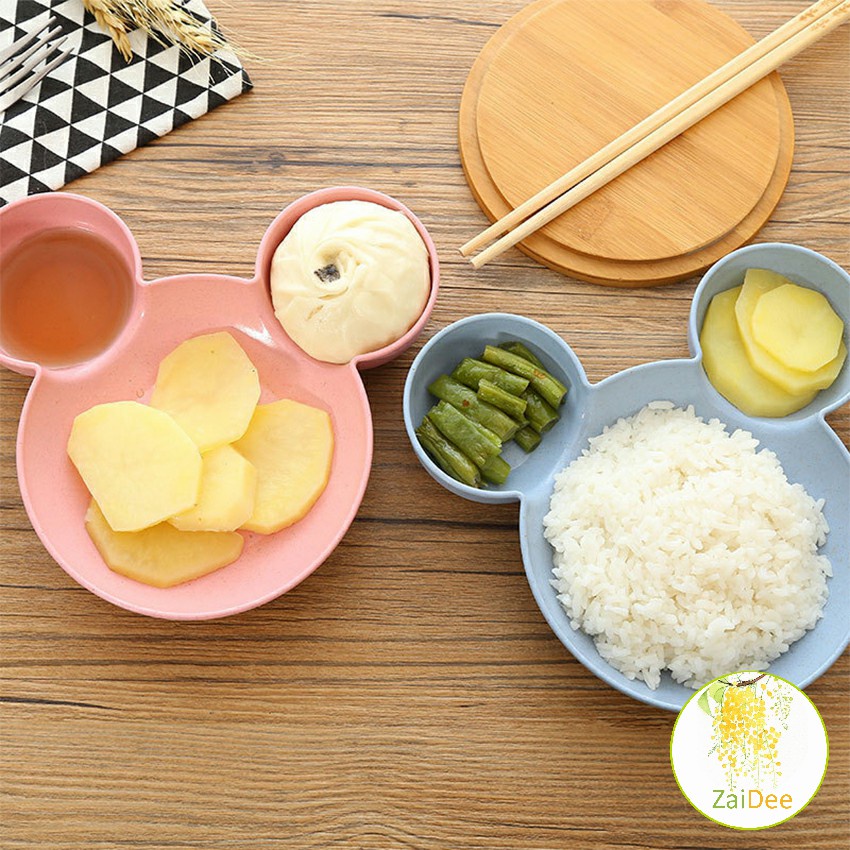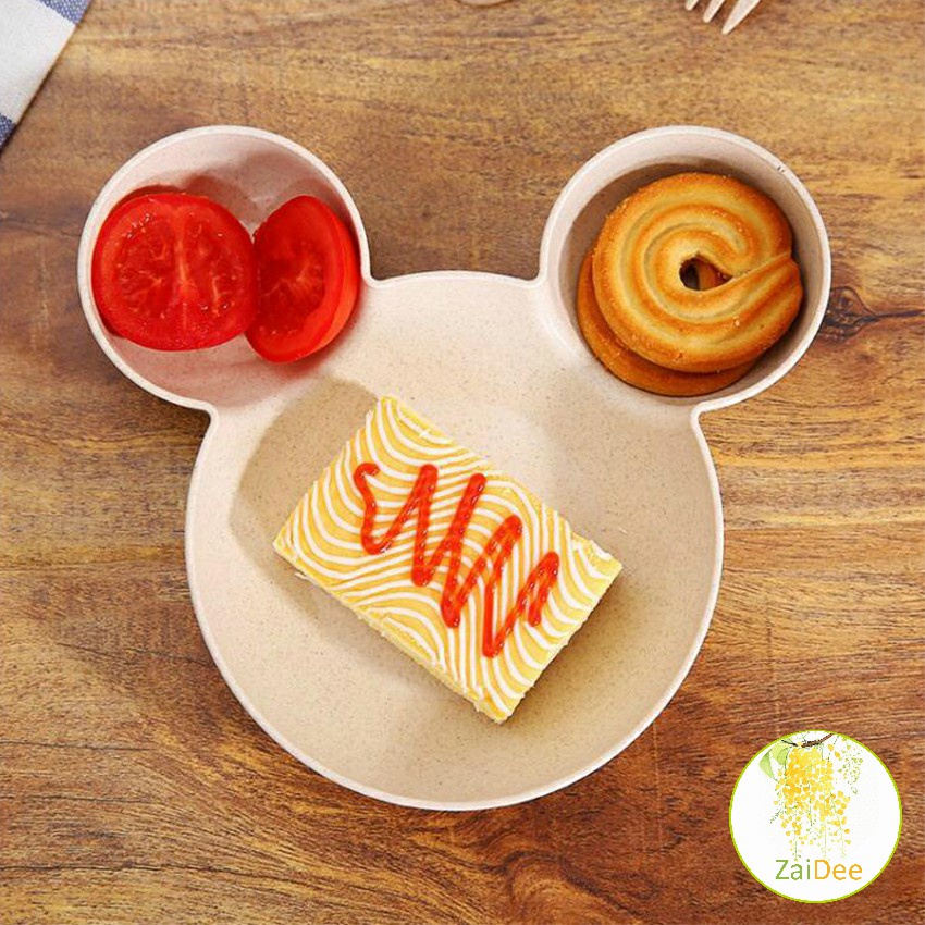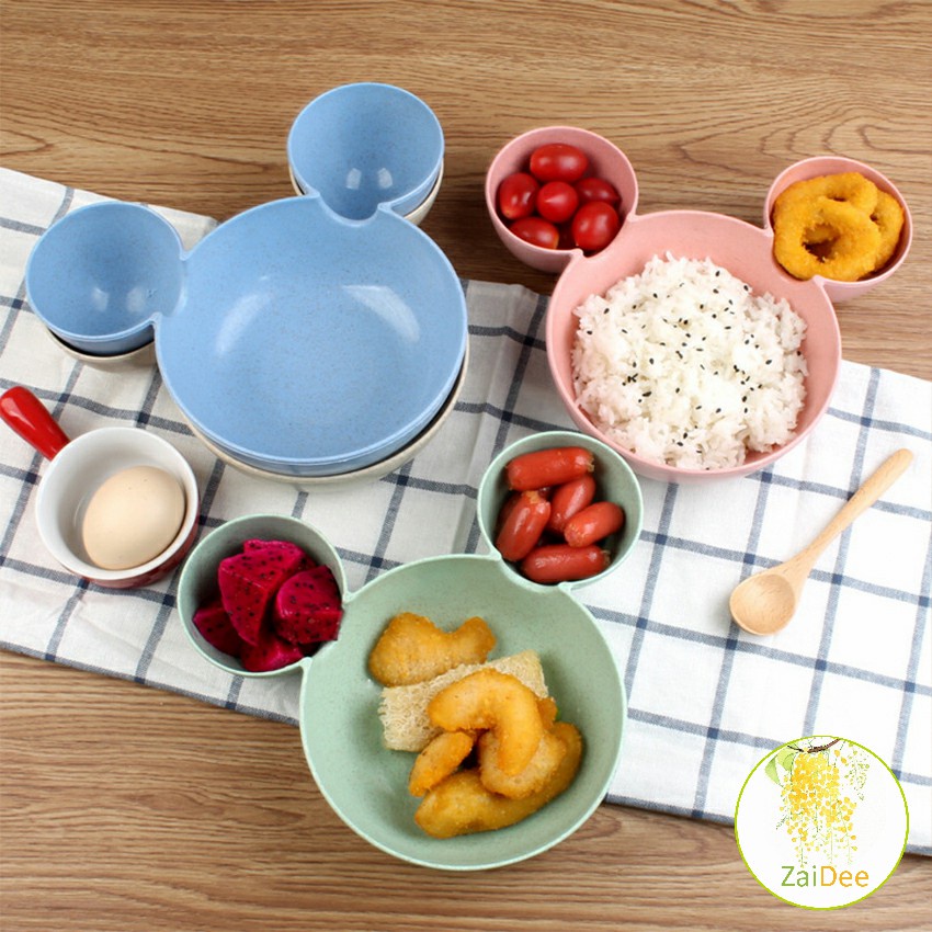 การ์ตูนมิกกี้ปรุงรสจาน ชามเด็ก ชามข้าวเด็กหัวมิกกี้ ชามแบ่ง 3 ช่อง จานใส่อาหารเด็ก จานใส่อาหารเด็ก Cartoon Mickey Plate