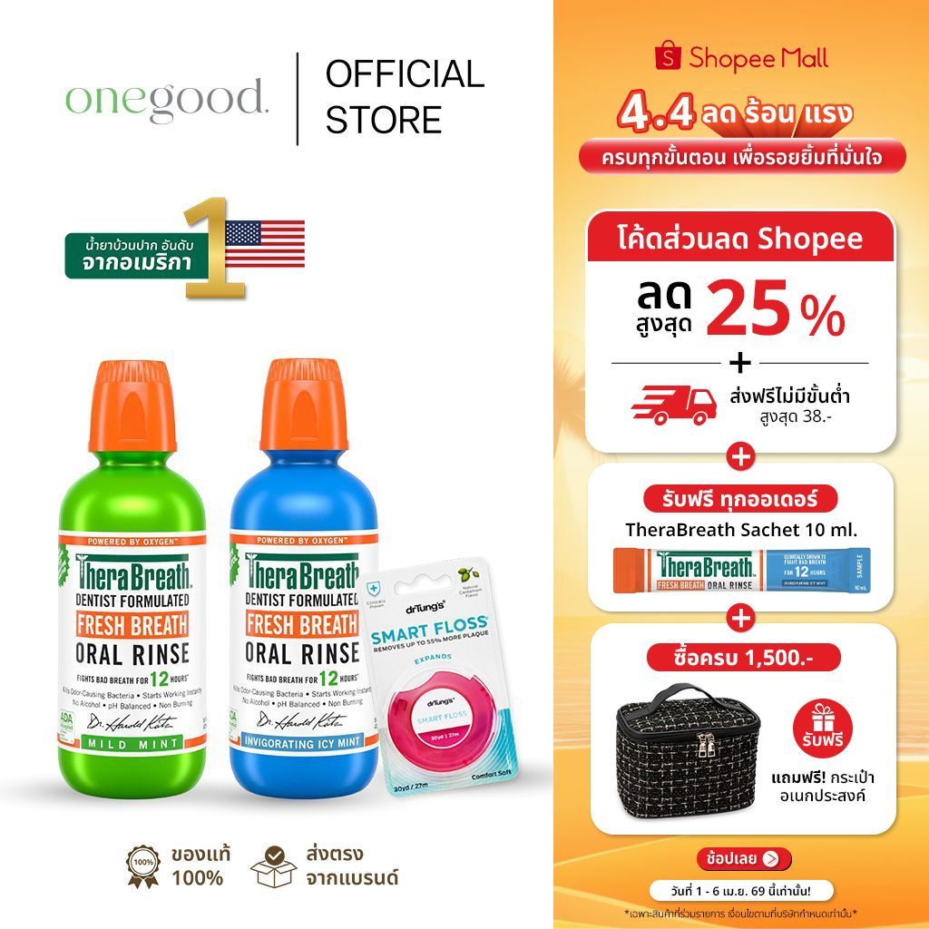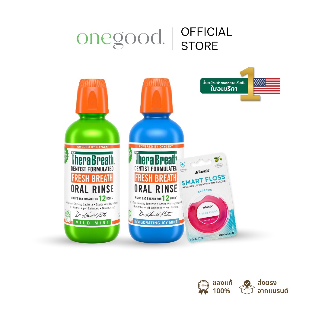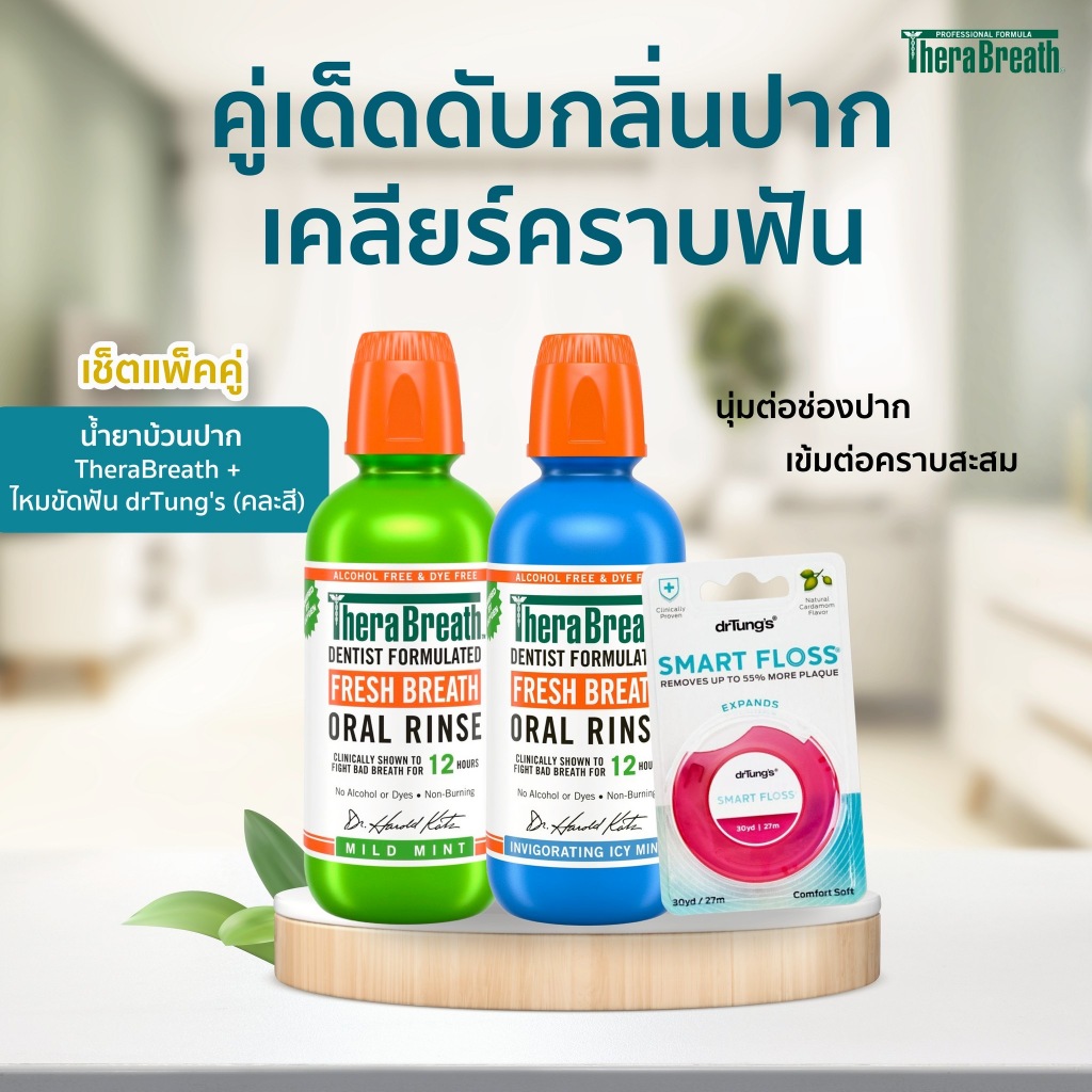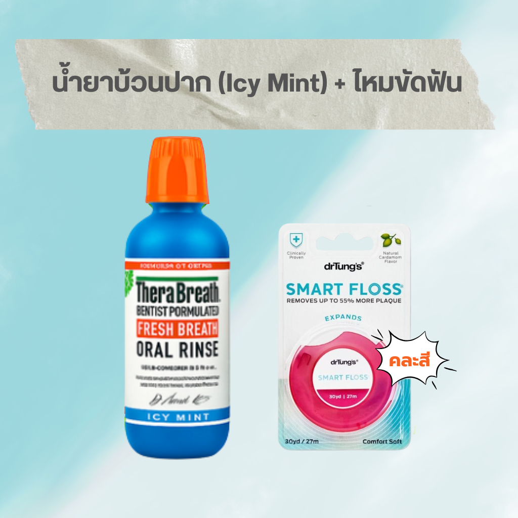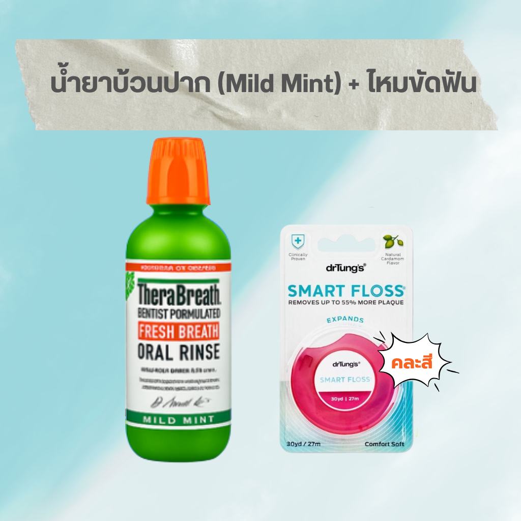 [ แพ็คคู่ดูแลปาก ] น้ำยาบ้วนปาก TheraBreath + ไหมขัดฟัน Smart Floss (คละสี) | จบปัญหากลิ่นปาก