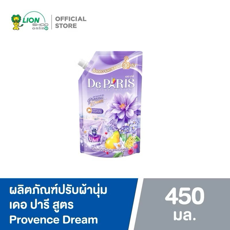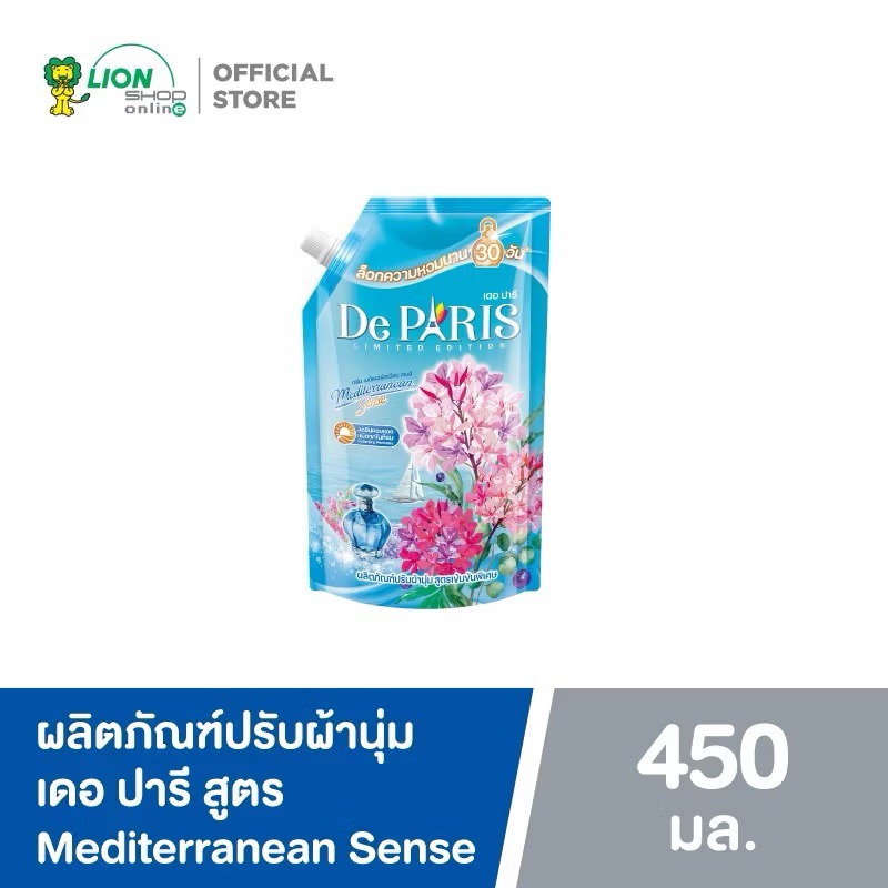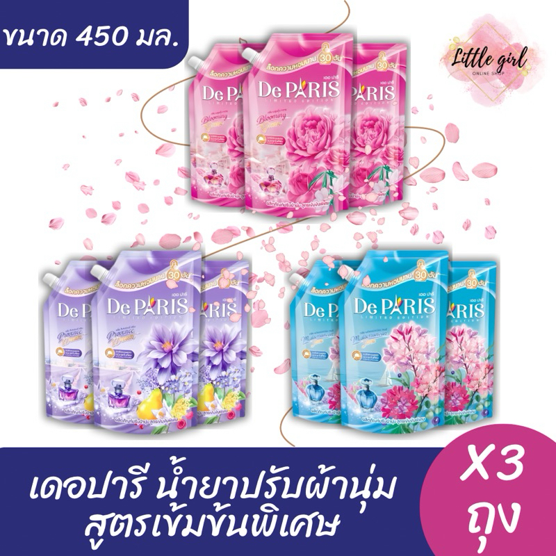 (3 ถุง) เดอปารี สดชื่นหอมแดด ผลิตภัณฑ์ปรับผ้านุ่มสูตรเข้มข้นพิเศษ ขนาด 450 มล. x3 ถุง