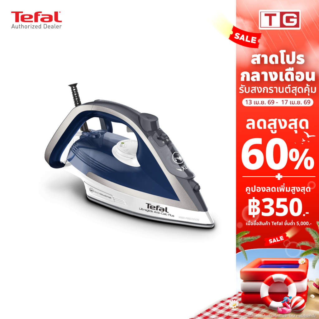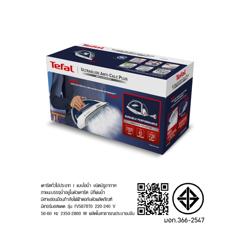 TEFAL เตารีดไอน้ำ รุ่น ULTRAGLIDE ANTI CALC PLUS 2800 วัตต์ รุ่น FV5878 (รับประกันศูนย์ 2ปี)