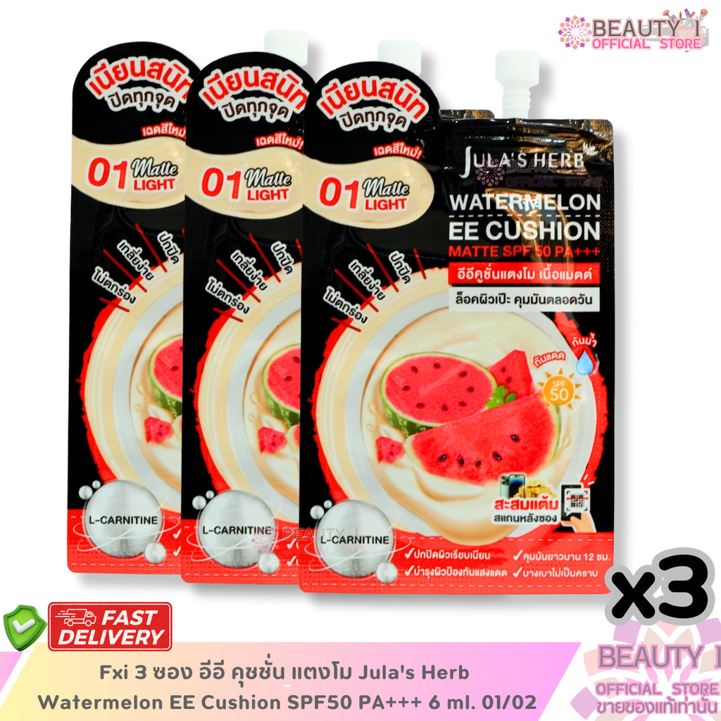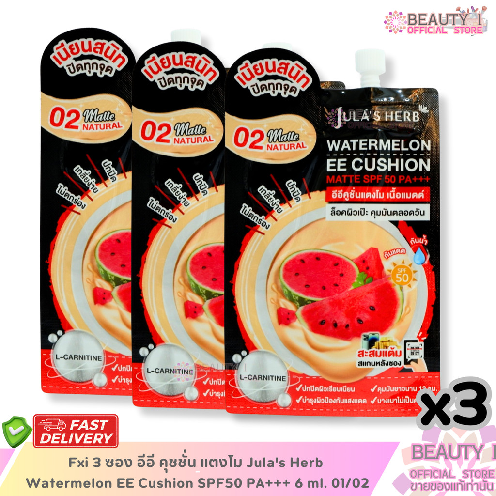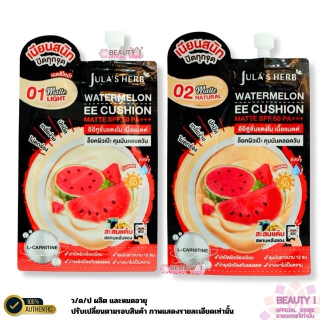 โปร 3 ซอง อีอี คุชชั่น แตงโม Jula's Herb Watermelon EE Cushion SPF50 PA+++ 6 ml. 01/02