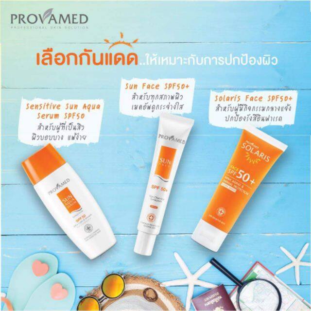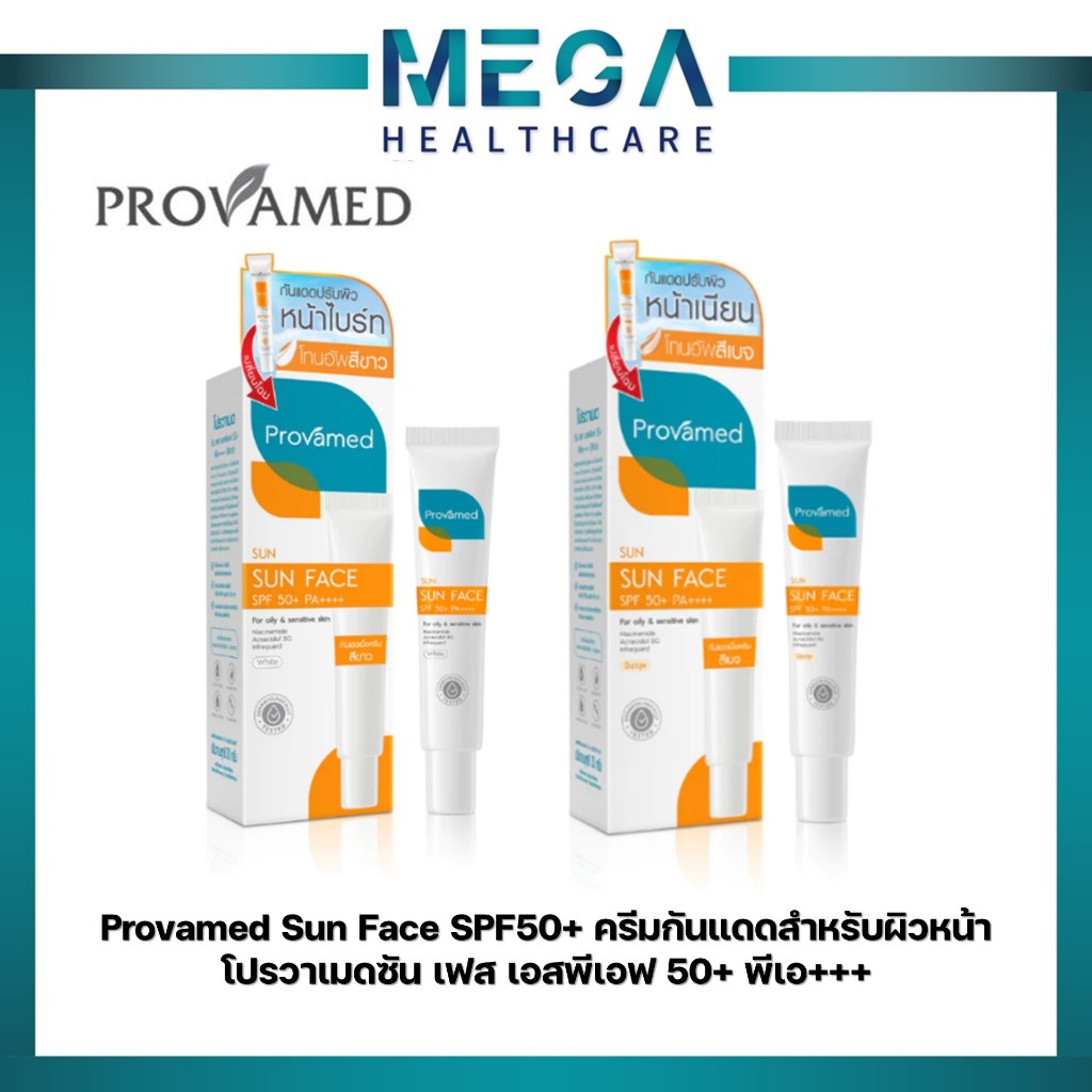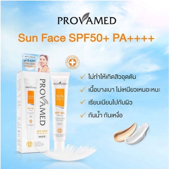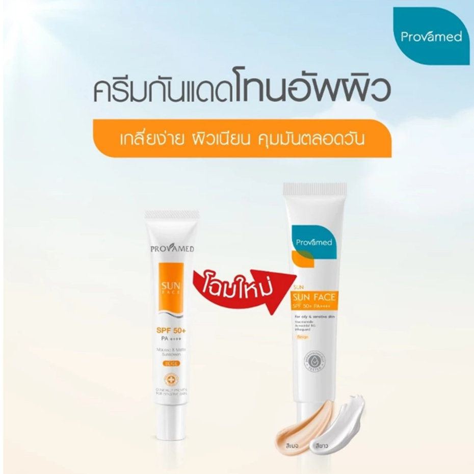 Provamed โปรวาเมด กันแดด SPF50 SunFace Sun Face ( 30 ml, 15 ml ) uv flawless defense