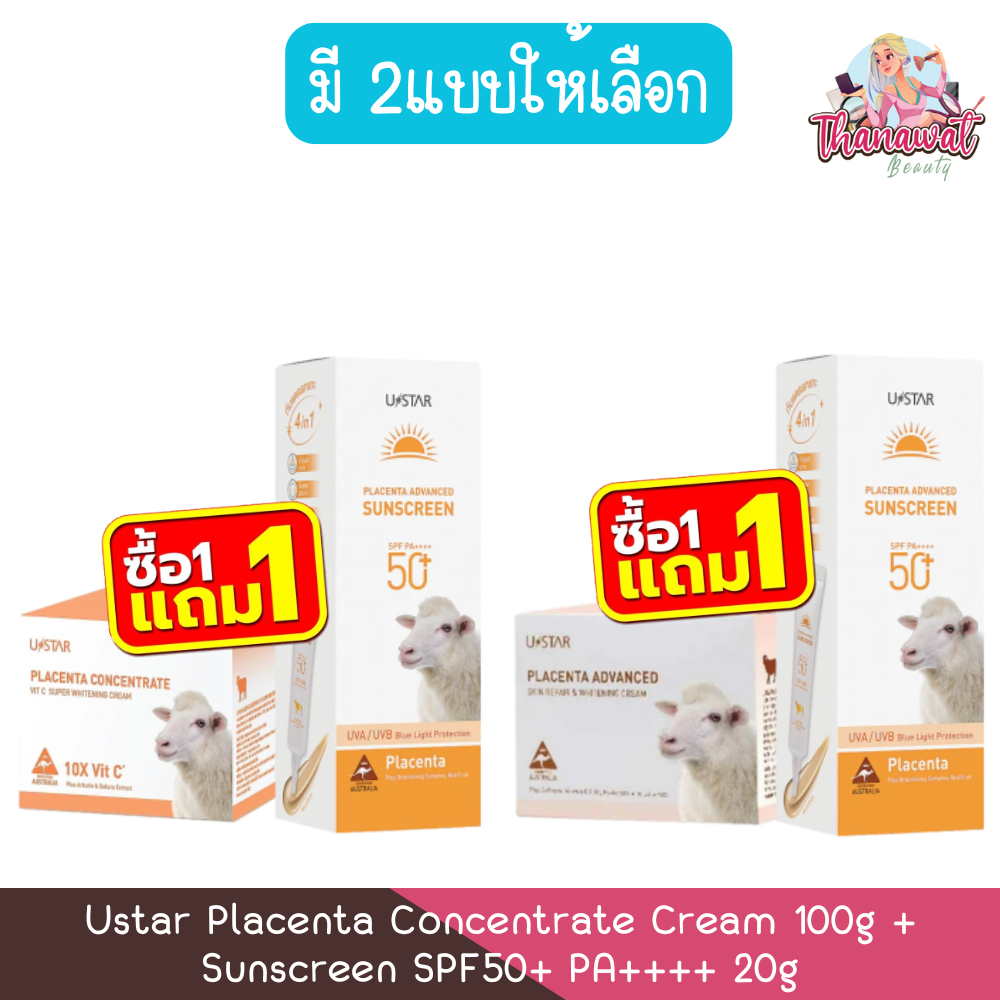 (1แถม1) Ustar Placenta Concentrate Cream 100g + Sunscreen SPF50+ PA++++ 20g ยูสตาร์ พลาเซนต้าครีม + กันแดด