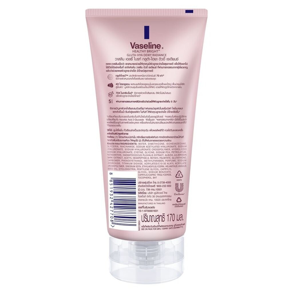 โปร 2 หลอด Vaseline วาสลีน เฮลธี้ ไบรท์ กลูต้า ไฮยา เซรั่ม เบิสท์ โลชั่น ดิวอี้ เรเดียนซ์ 170 มล.