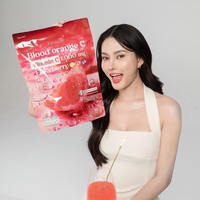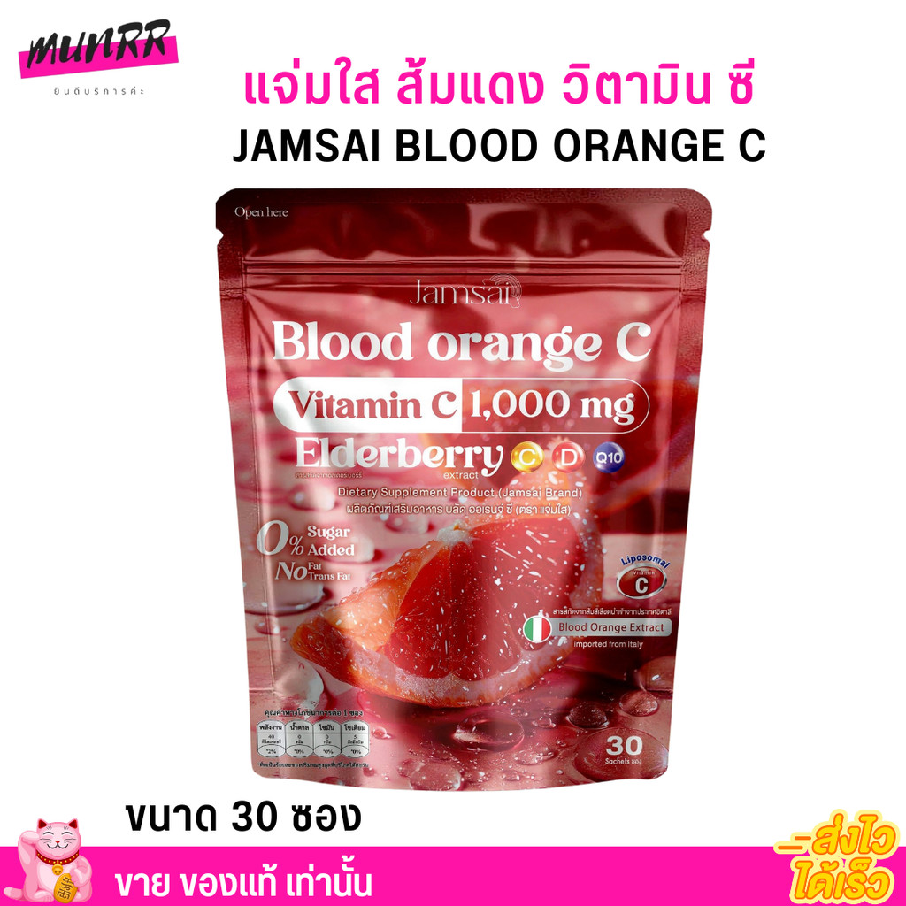 [1 ห่อ 30 ซอง] แจ่มใส น้ำชงส้มแดง วิตซี คลอลาเจน แบบชง Jamsai Blood Orange C แจ่มใส บลัด ออเรนจ์ ซี ส้มเลือด น้ำชงผิวใส