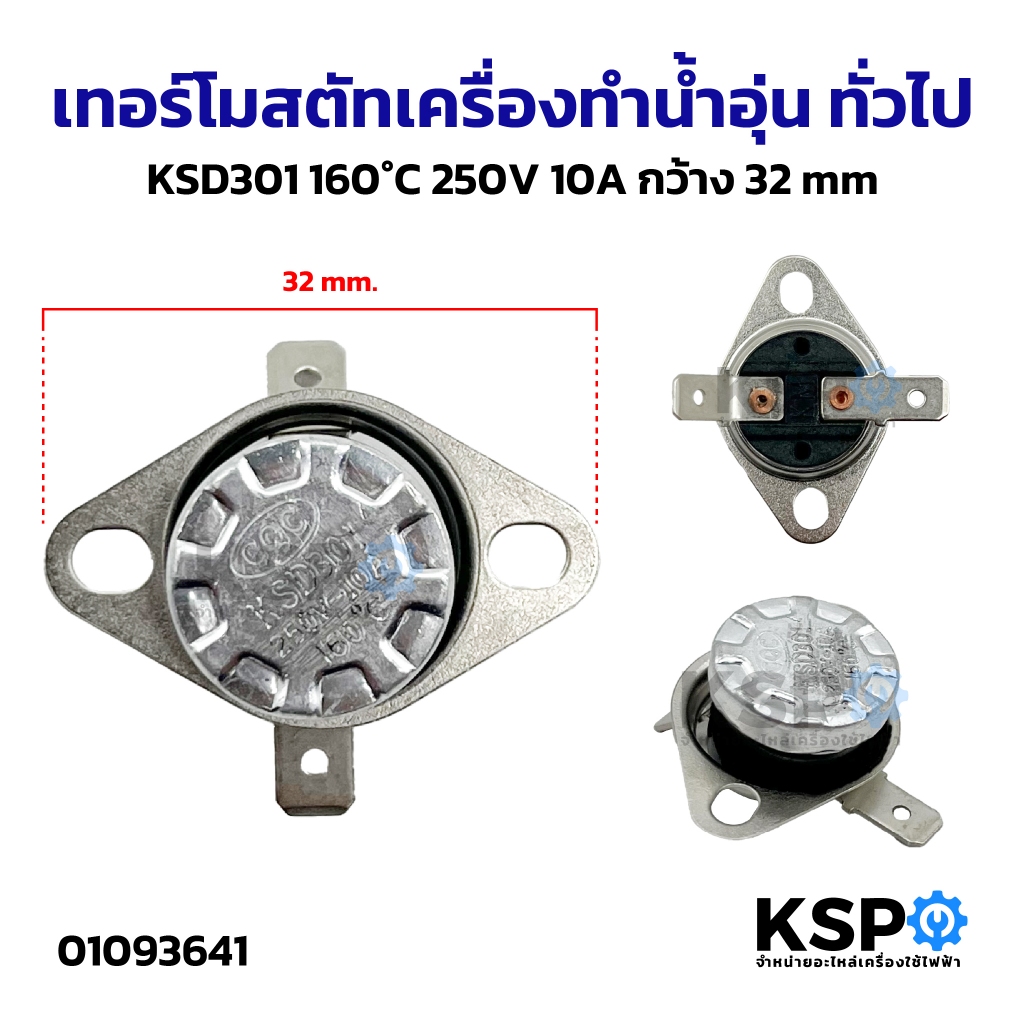 เทอร์โมสตัทเครื่องทำน้ำอุ่น ทั่วไป KSD301 160°C 250V 10A กว้าง 32mm อะไหล่เครื่องทำน้ำอุ่น
