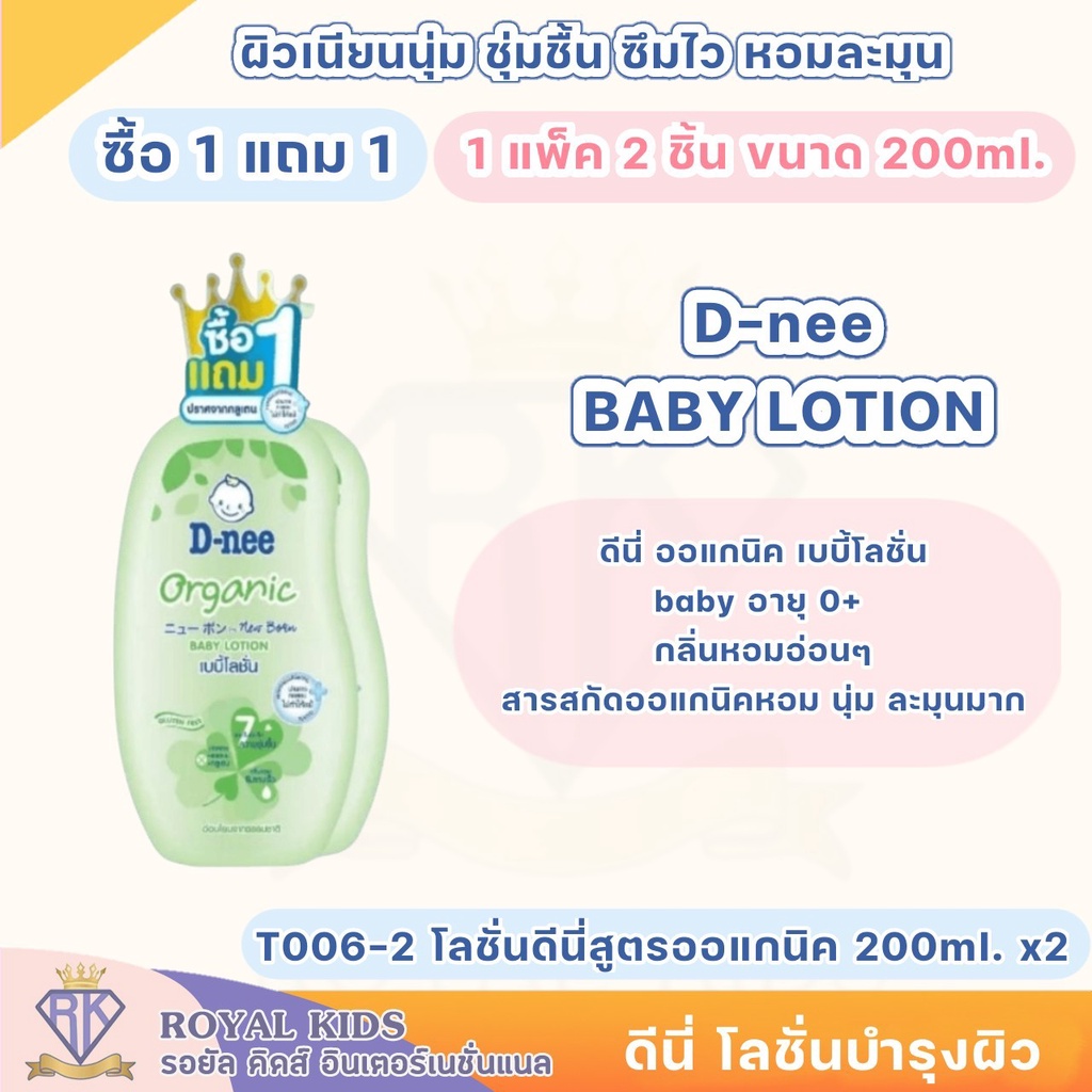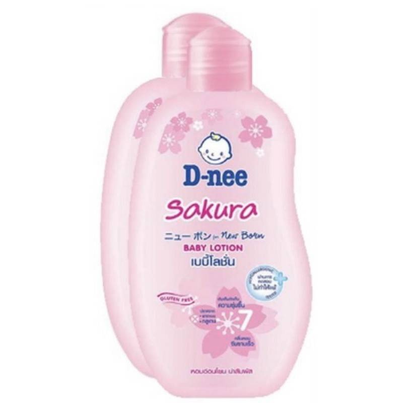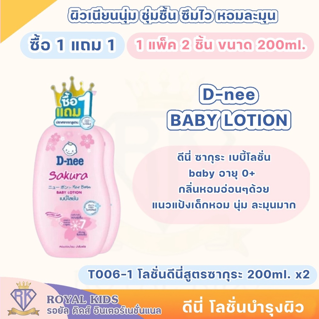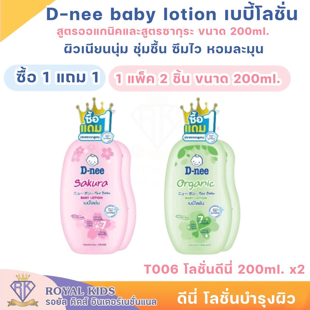 T006 (1แถม1) D-nee pure ดีนี่เบบี้โลชั่นสูตรออแกนิคและซากุระขนาด 200 ml.แพ็ค2ขวด