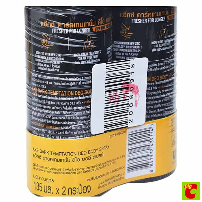 แอ๊กซ์ สเปรย์ระงับกลิ่นกาย กลิ่นดาร์กเทมเทชั่น 135 มล. แพ็คคู่