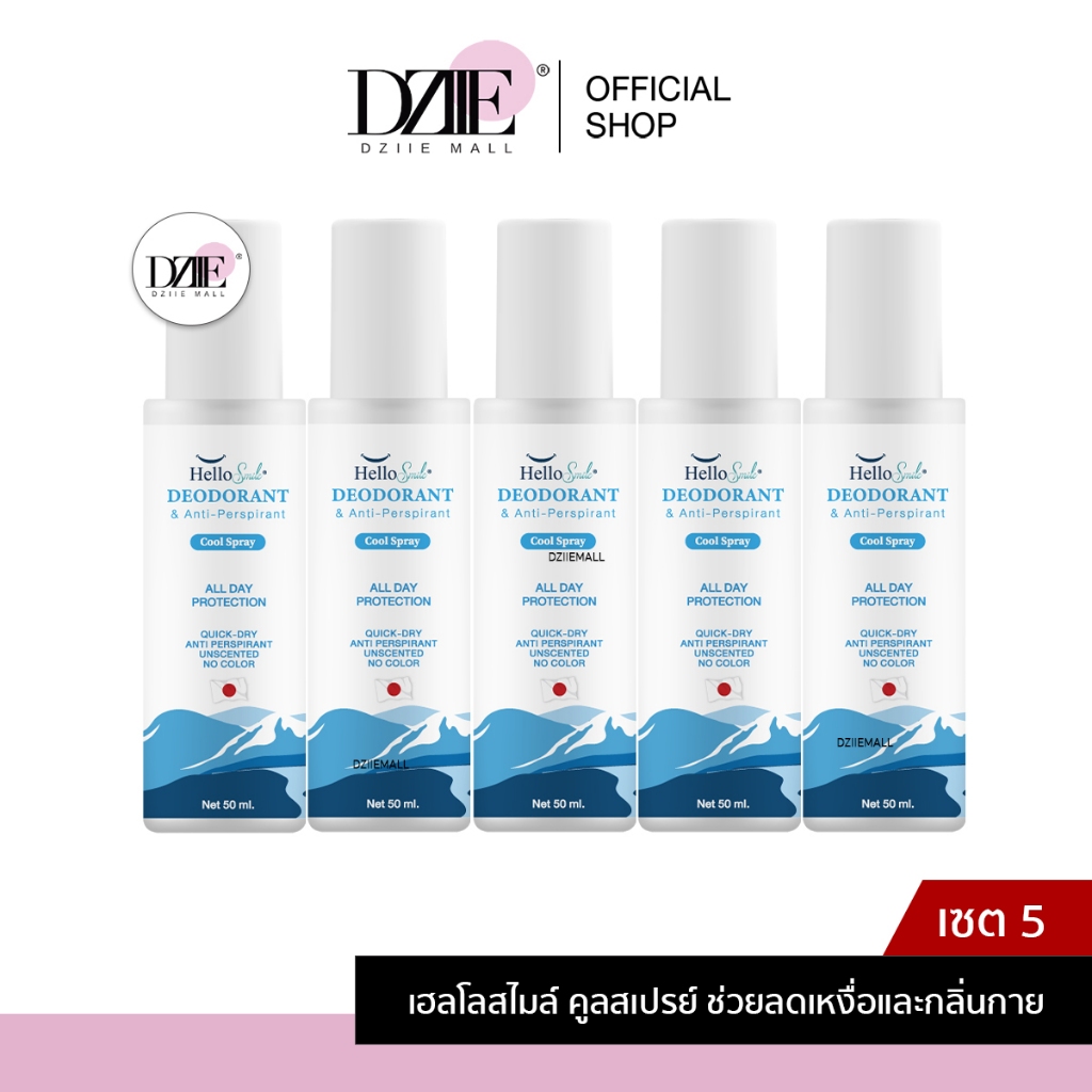 [เซต5ขวด]Hellosmile Cool Spray เฮลโลสสไมล์ คูล สเปรย์ ดับกลิ่น ลดเหงื่อ เย็นสบาย อ่อนโยน ไม่ทิ้งคราบ 50 มล.