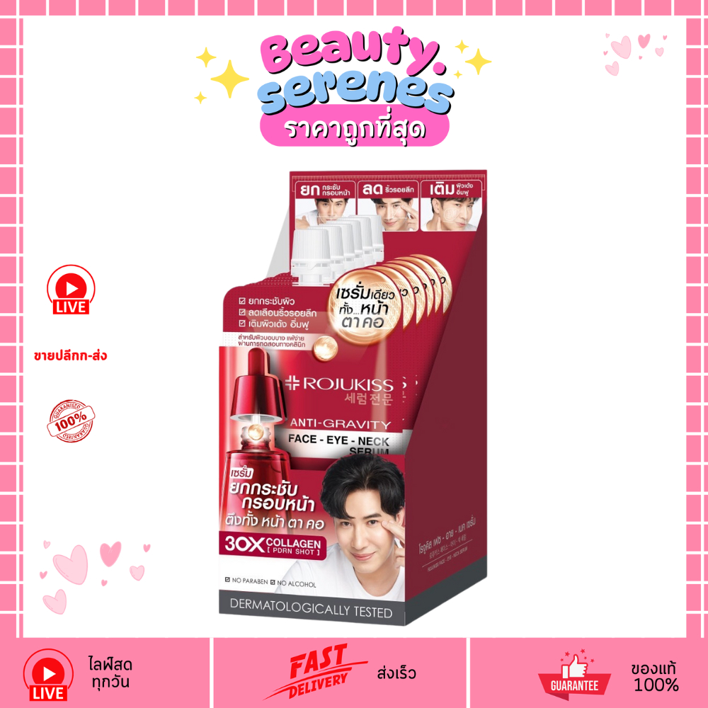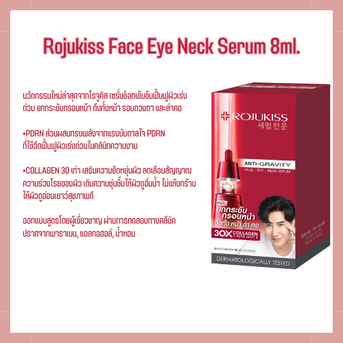 (กล่องX6ซอง) Rojukiss 3in1 Face Eye Neck Serum เฟส อาย เนค เซรั่มบำรุงหน้า-ตา-คอ 8ml