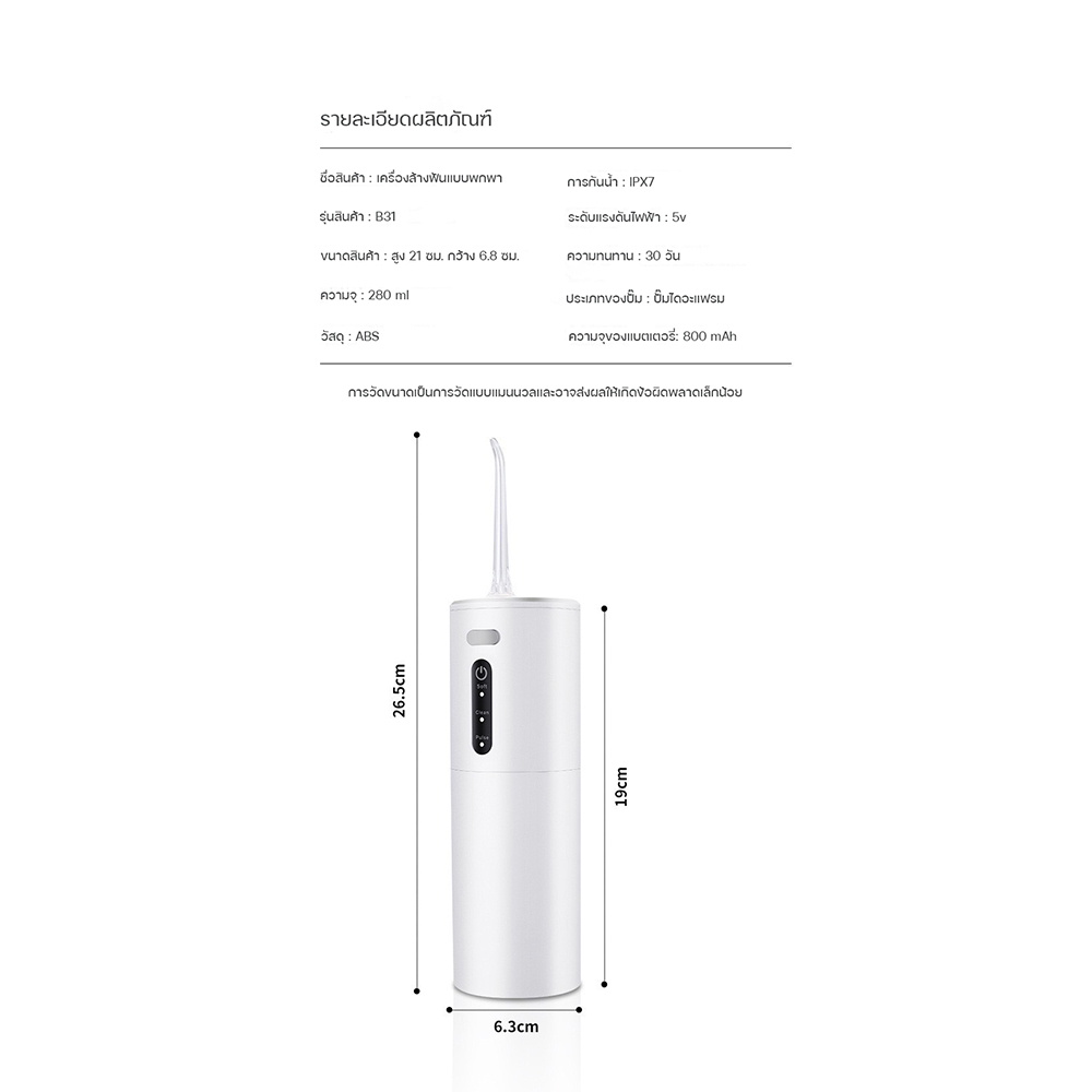 เครื่องล้างฟันพกพา ไหมขัดฟันพลังน้ำ ผลิตภัณฑ์ดูแลช่องปาก อุปกรณ์ดูแลช่องปาก อุปกรณ์ทำความสะอาดฟัน ขนาด 280 มล