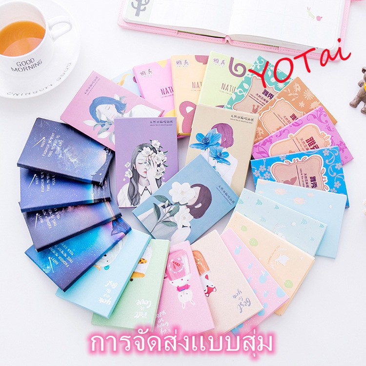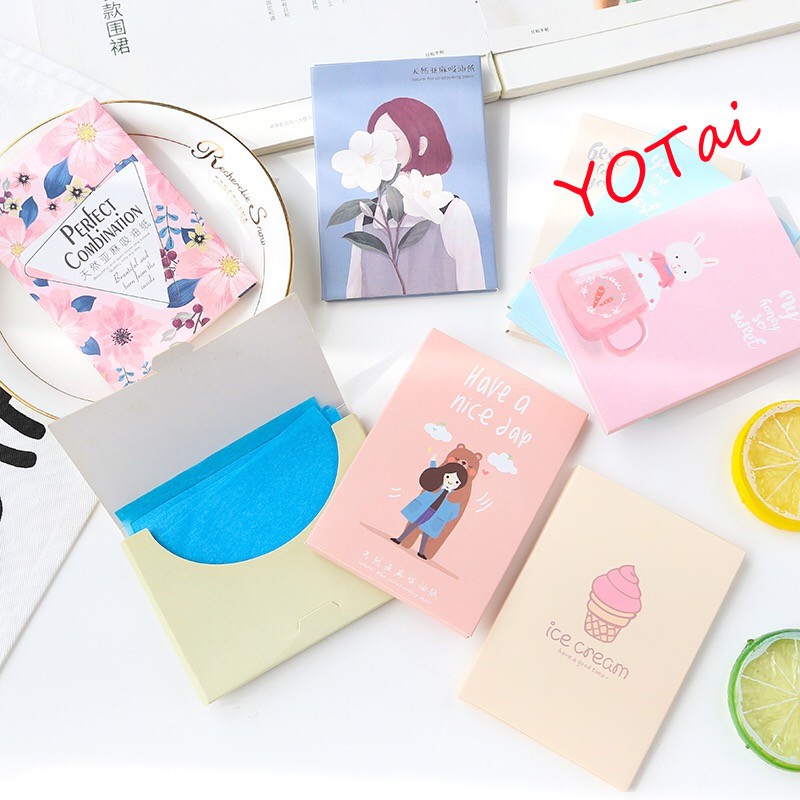 YOTAI กล่องหลากสีสัน กระดาษซับมัน 50 แผ่น กระดาษซับหน้ามัน ดูดซับความมันส่วนเกินได้ดี แผ่นกระดาษซับมัน ราคาถูก