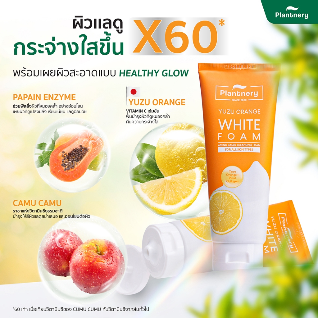 แพลนน์เนอร์รี่ โฟมล้างหน้า Plantnery Foam Tea Tree Acne / Yuzu Orange White 100 g.