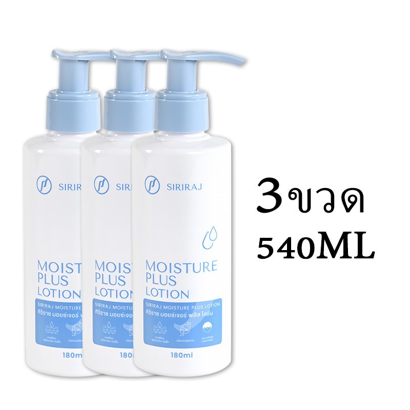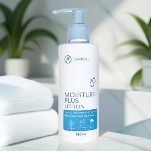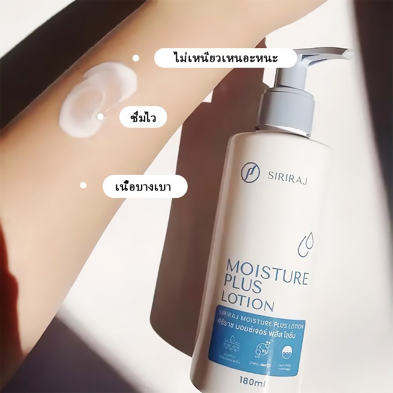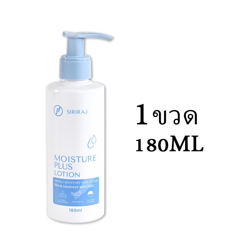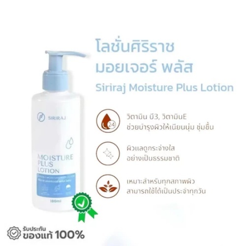 Siriraj Moisturizing Lotion Plus Body Lotion 180ml ประกอบด้วยวิตามินอี + วิตามินบี 3 ให้ความชุ่มชื้น กระจ่างใส ให้ความชุ