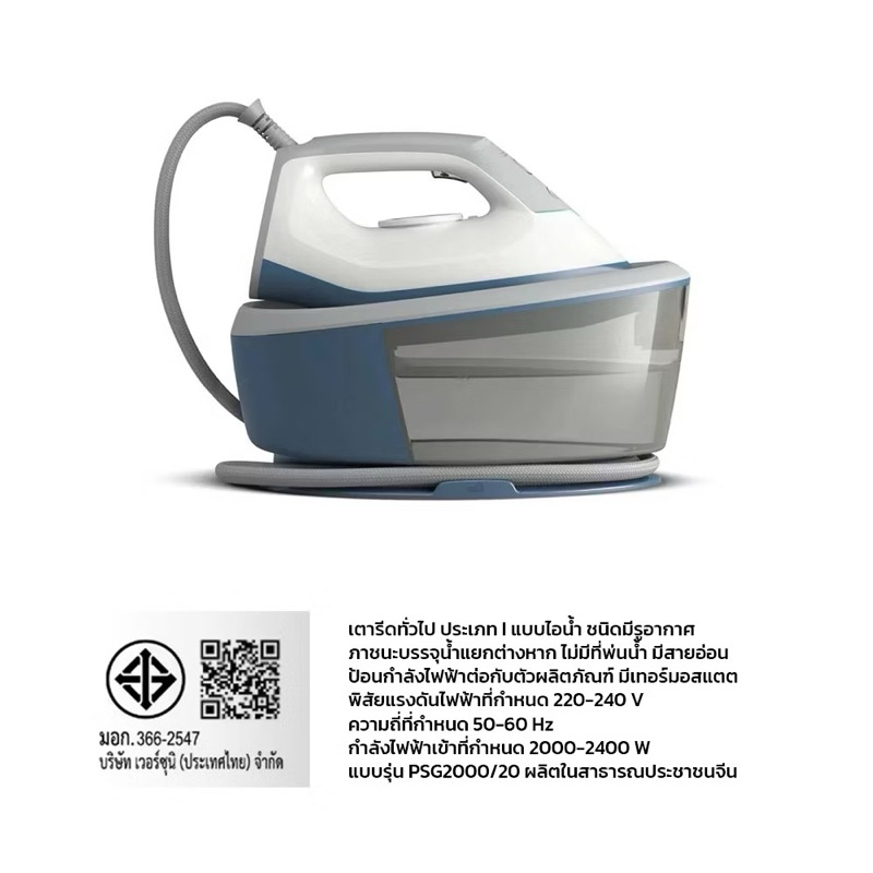 [ใหม่ล่าสุด] Philips Steam Generator Iron เตารีดแ รงดันไอน้ำ รุ่น PSG2000/80 กำลังไฟ 2,400 วัตต์ PSG2000