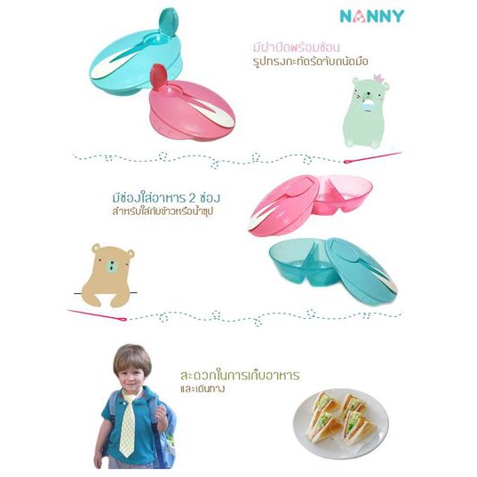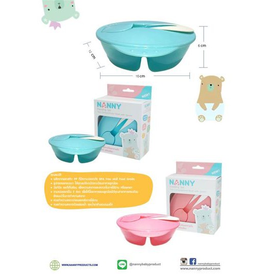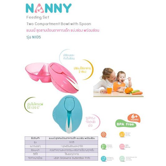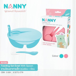 Nanny (รุ่น N105-C ) ชามป้อนอาหารเด็กแบ่งช่อง + ช้อน (สีฟ้า)