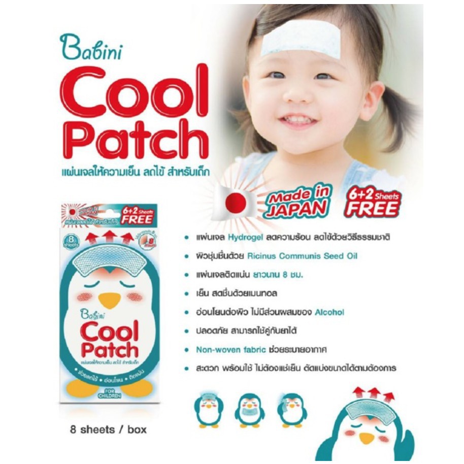 Babini Cool Patch เบบินี่ คูล แพด [8 แผ่น] แผ่นเจลให้ความเย็น ลดไข้ สำหรับเด็ก