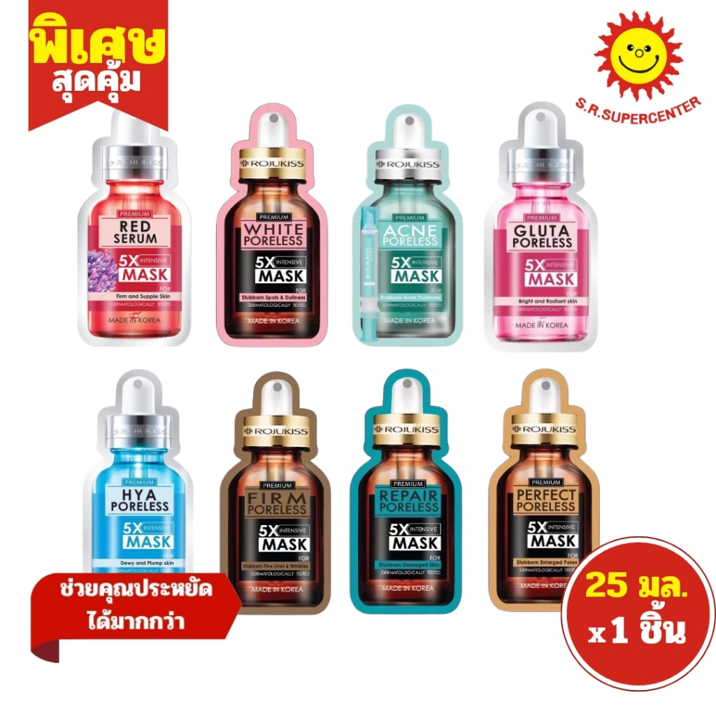 [ 1ชิ้น ] Rojukiss โรจูคิส พอร์เลส5x เทนซีฟมาส์ก มาส์กหน้า ขนาด 25 มล. (1ชิ้น) คละสูตร