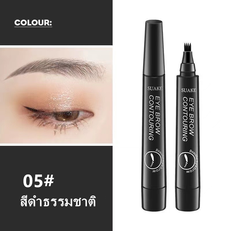 ดินสอเขียนคิ้ว หัวแปรงสี่แฉก กันน้ำ ติดทนนาน สีดํา สีน้ำตาล 4 ชิ้น พร้อมแปรงปัดคิ้ว เนื้อดี เขียนง่าย เส้นคม