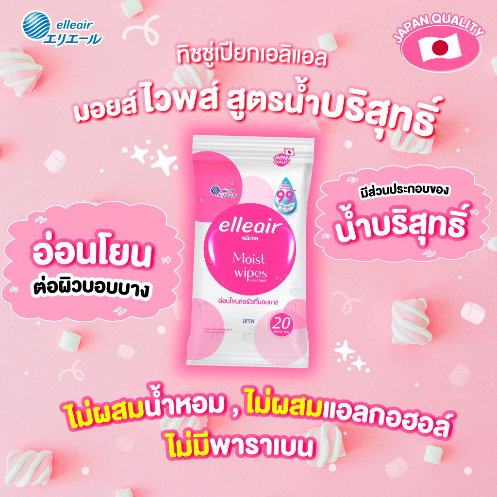 เอลิแอล ทิชชู่เปียกสูตรน้ำบริสุทธิ์ 20ชิ้น/Elleair Moist Wipes 20 P