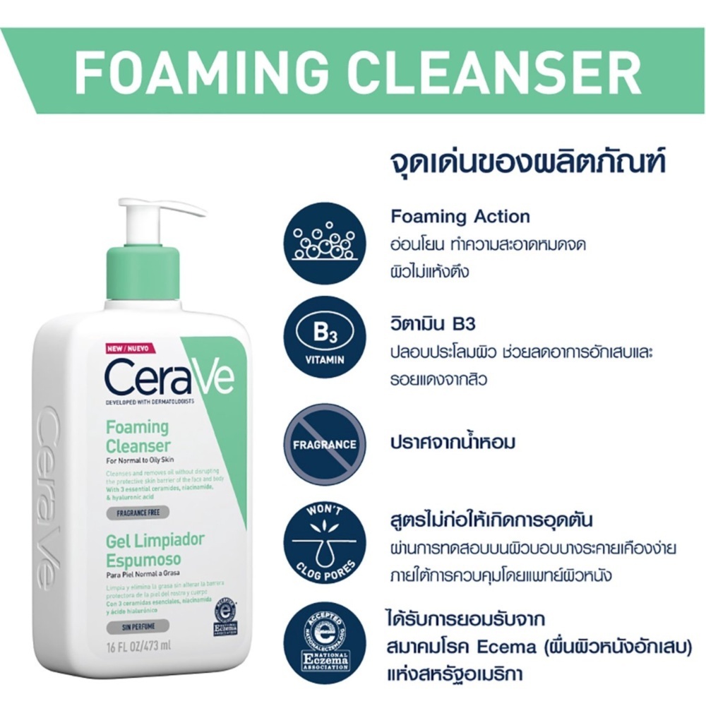 CERAVE Foaming Cleanser 473 ml เซราวี โฟมมิ่ง คลีนเซอร์ 473มล.