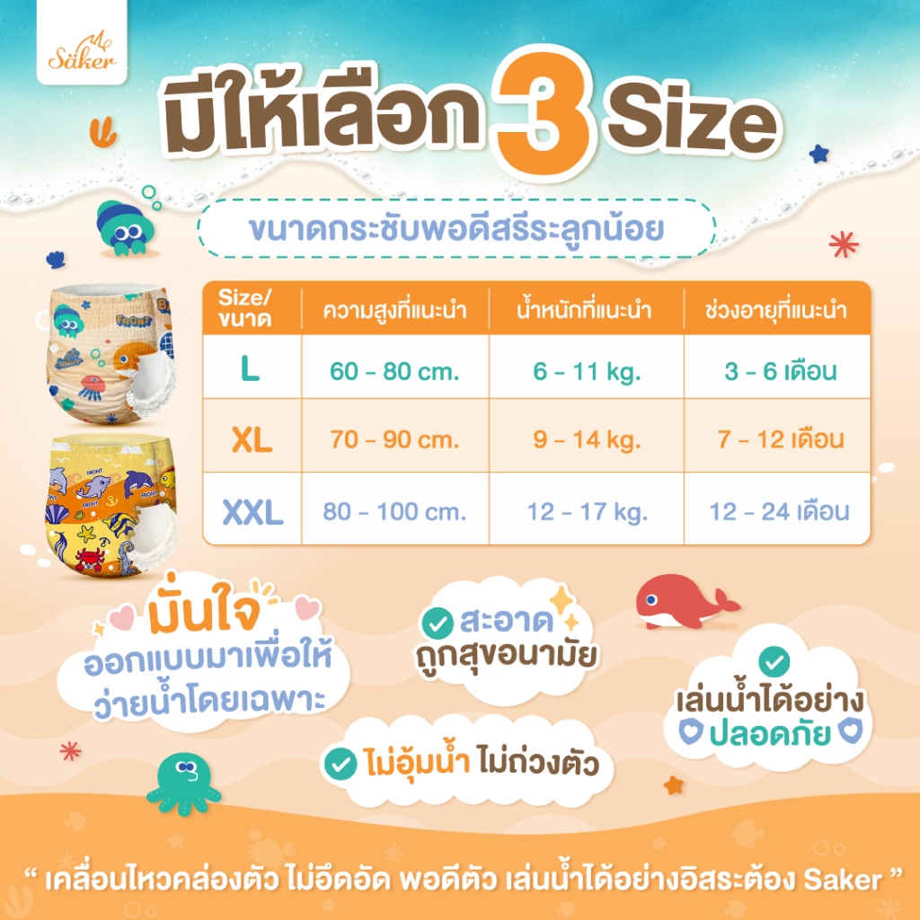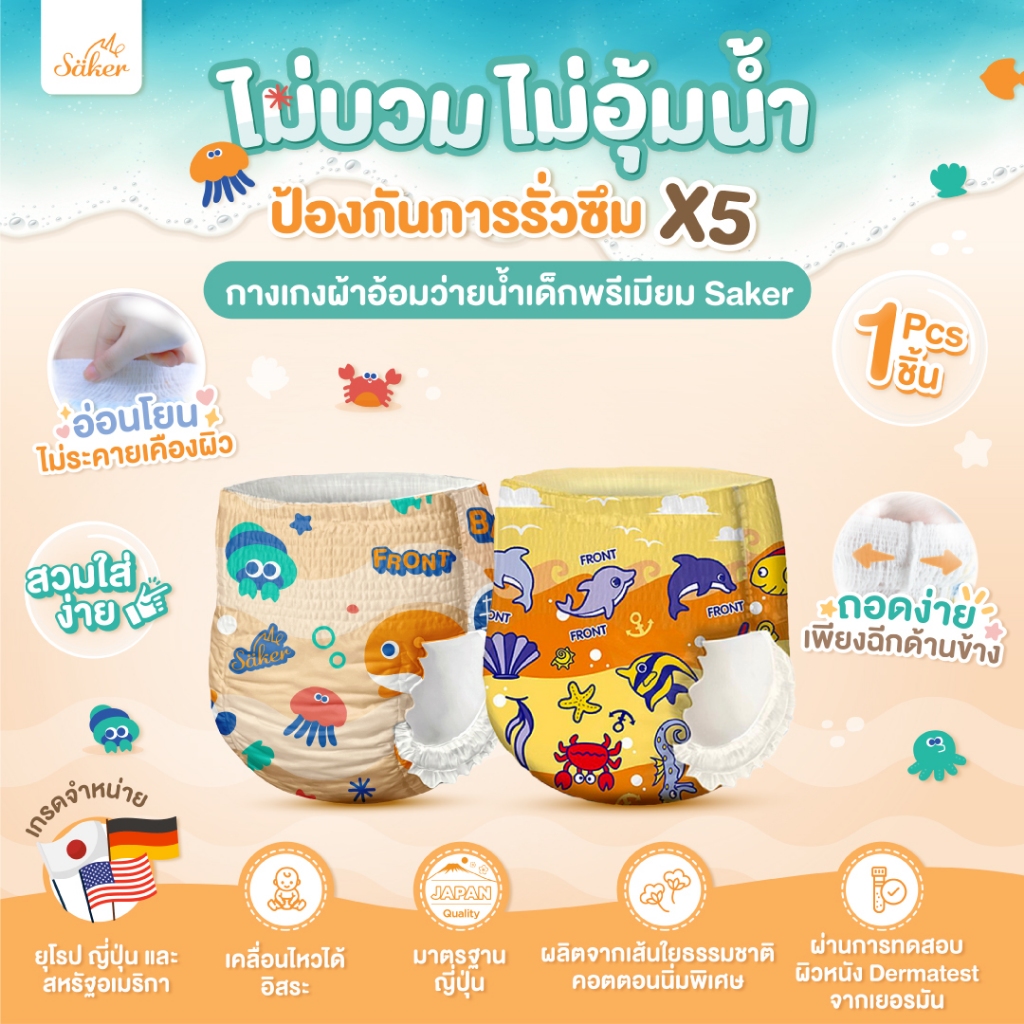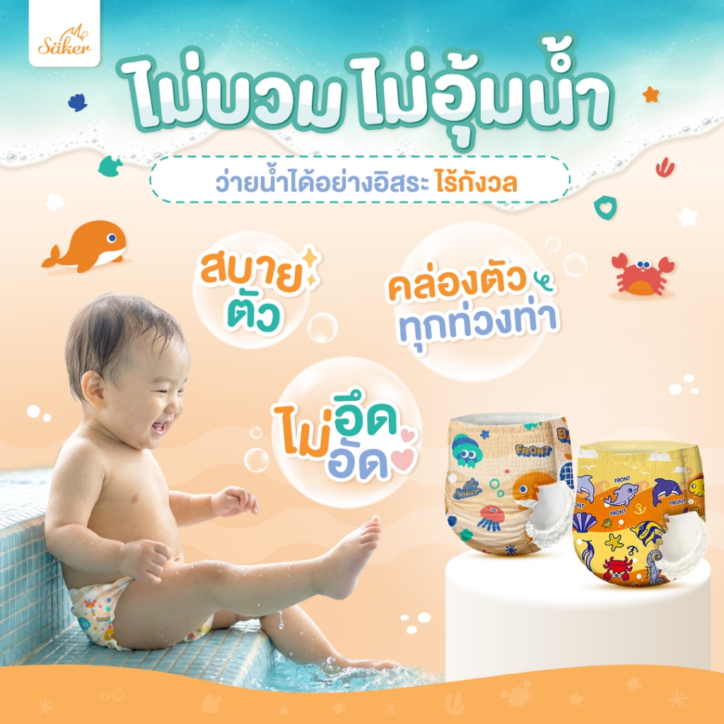คล่องตัวทุกท่วงท่า Saker กางเกงผ้าอ้ อมว่ายน้ำพรีเมี่ยม(เกรดที่ขายในยุโรป,ญี่ปุ่น,U.S.A.)ไม่อุ้มน้ำ