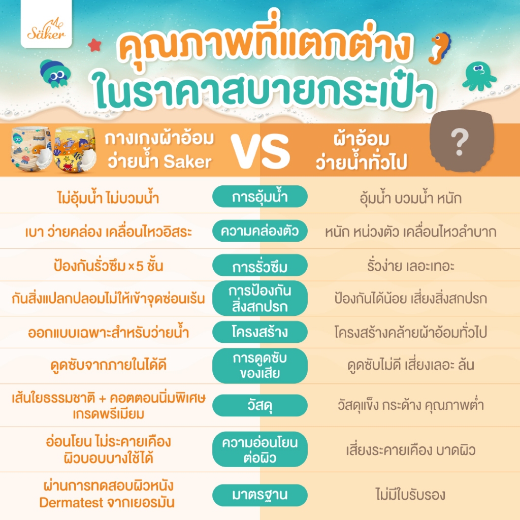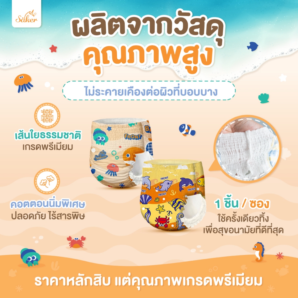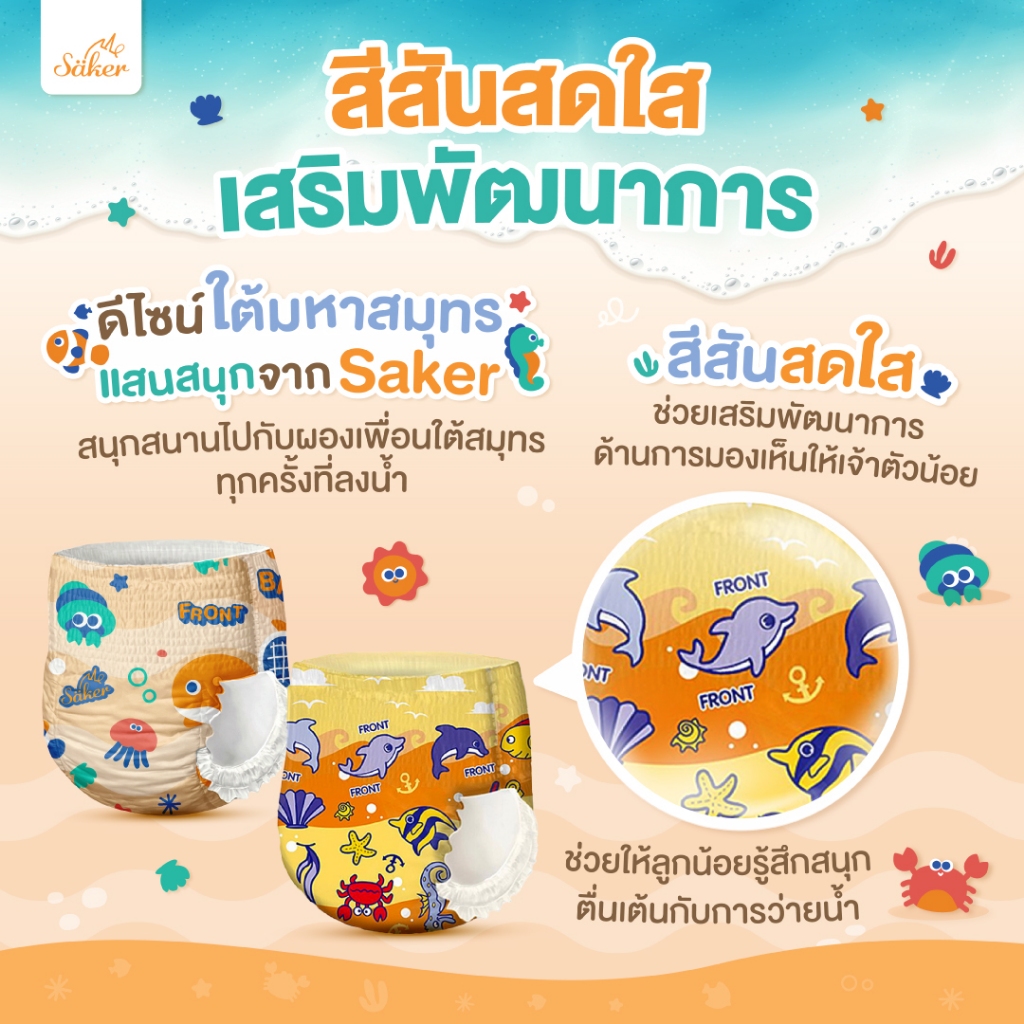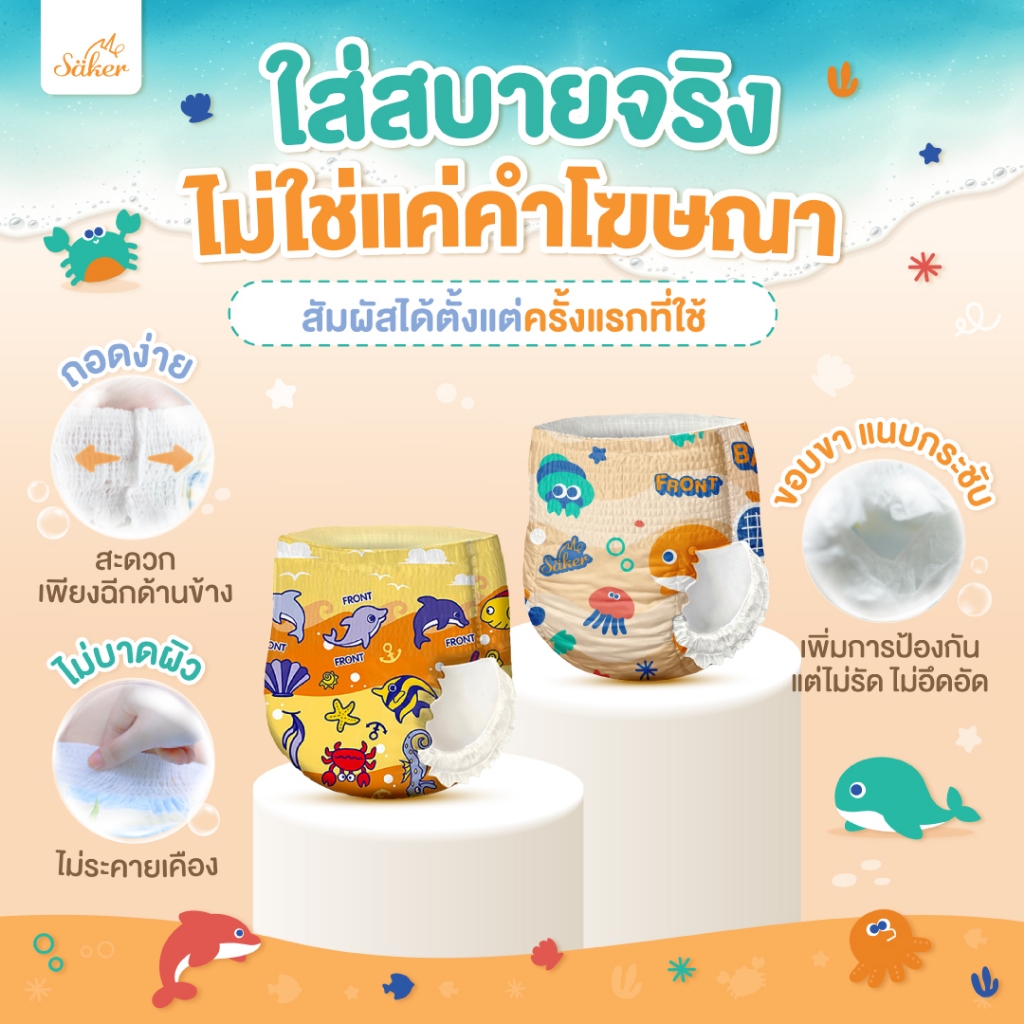 คล่องตัวทุกท่วงท่า Saker กางเกงผ้าอ้ อมว่ายน้ำพรีเมี่ยม(เกรดที่ขายในยุโรป,ญี่ปุ่น,U.S.A.)ไม่อุ้มน้ำ