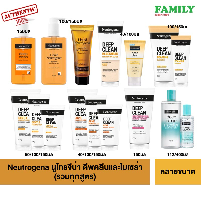 Neutrogena นูโทรจีนา เจลล้างหน้า โฟมล้างหน้า และ ไมเซล่า(รวมทุกสูตร) 40-400มล