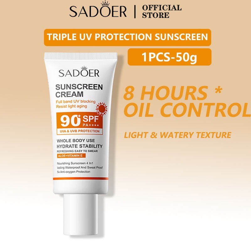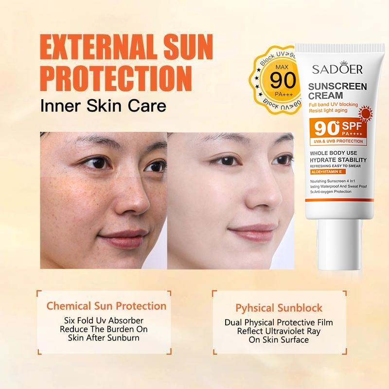 SADOER ครีมกันแดด SPF 90+ PA+++ ไวท์เทนนิ่งกันน้ำ กันเหงื่อ ชุ่มชื้น 50g