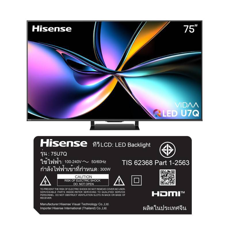 HISENSE ทีวี U7Q สมาร์ททีวี 75 นิ้ว 4K VIDAA Mini-LED Pro รุ่น 75U7Q ปี 2025