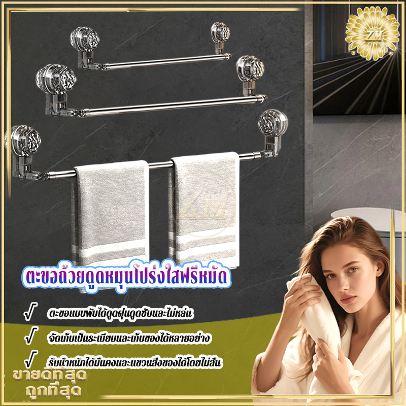 ราวแขวนผ้าในห้องน้ำ ราวแขวนผ้าขนหนู ติดผนัง ราวตากผ้า ที่แขวนผ้าเช็ดตัว สามารถยืดหดได้30-130CM ไม่ต้องเจาะรู