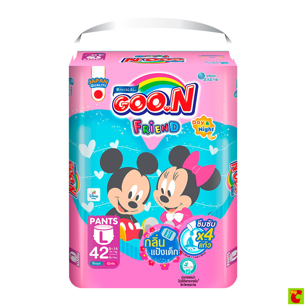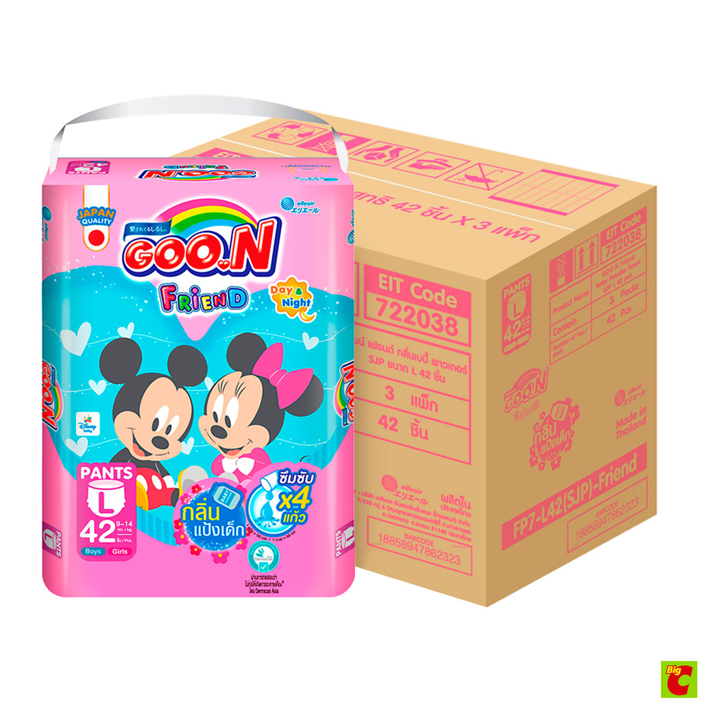 กูนน์ เฟรนด์ ผ้าอ้อมเด็กแบบกางเกง กลิ่นแป้งเด็ก ขนาด L 42 ชิ้น แพ็ค 3