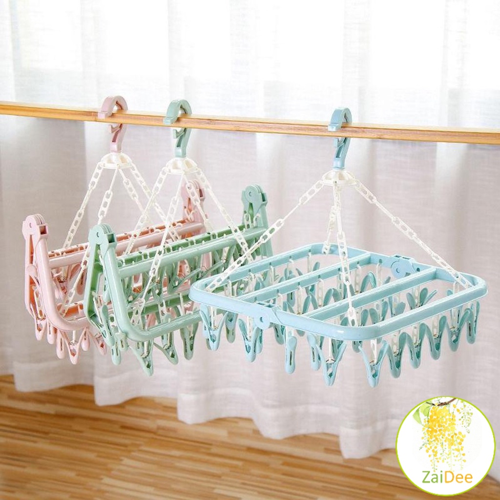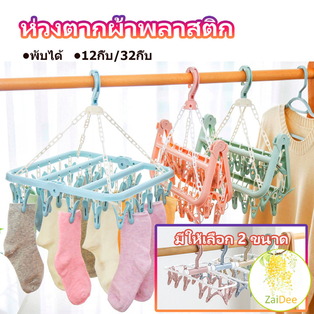 ตากผ้าเหลี่ยม พับได้ ที่แขวนห่วงหนีบผ้าพลาสติก แขวนได้ทั้งผ้าเปียก ตากชุดชั้นใน ถุงเท้า ราวหนีบผ้า ที่ตากผ้า